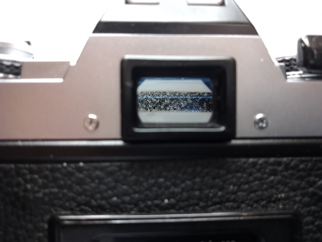 ich bin mir nicht sicher, ob es einfach eine Frage des Alters ist – von vielen Kameras der 1970er Jahre werden derartige Erscheingungen ja nicht berichtet; notorisch ist dieser 'Prismenfraß' bei den einstelligen Olympus-Modellen (insbesondere der OM-1) und dem Eyelevel-Sucher DE-1 der Nikon F2. Vielleicht liegt das am verwendeten Material oder der besondere Bauweisen bei diesen Prismen; von anderen Nikons ist mir das jedenfalls nicht bekannt (übrigens auch nicht von Minoltas!). Vielleicht stimmt meine Vermutung auch nicht, allerdings deckt sich Deine Fehlerbeschreibung mit denen im Netz. So eine defekte OM-1 hatte ich auch mal kurzfristig, auch ein DE-1 war betroffen.