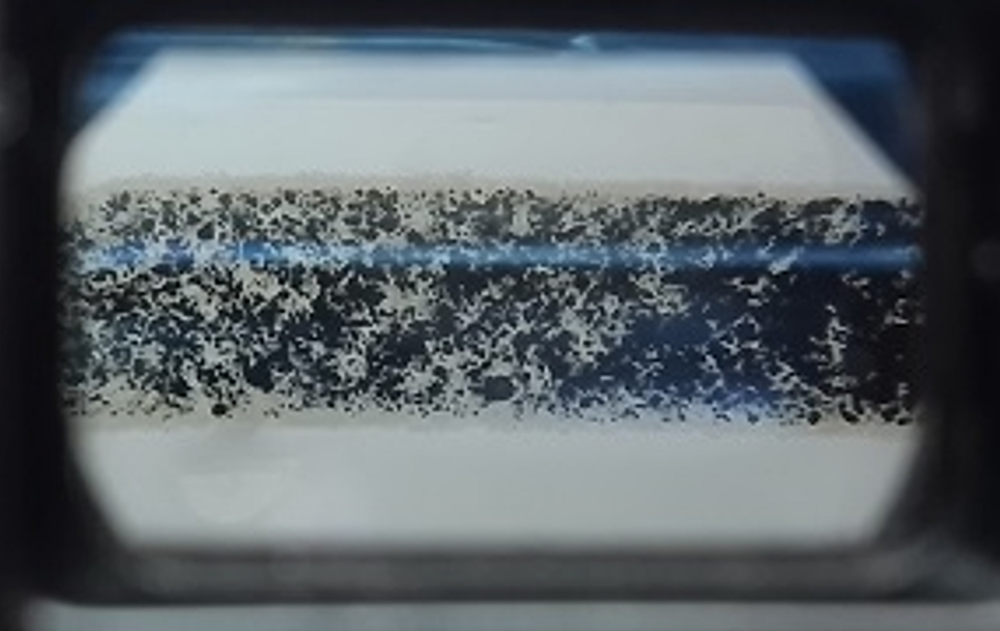 Im ersten Augenblick dachte ich, ob das nicht ein Pilz im Strahlengang ist, sieht aber nicht ganz so aus.