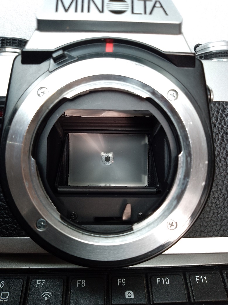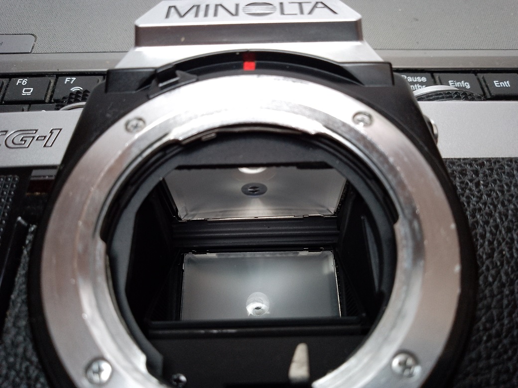 mein Neuzugang, eine wirklich schöne und gut erhaltene Minolta XG-1 (n), hat diesen nervigen und wirklich störenden (Teile der Belichtungsanzeige werden verdeckt) schwarzen Strich im Sucher. Gibt es eine Möglichkeit (außer Totalzerlegung des oberen Bereiches) diesen "Störenfried" zu entfernen? Der Strich scheint sich nicht auf der Mattscheibe zu befinden.