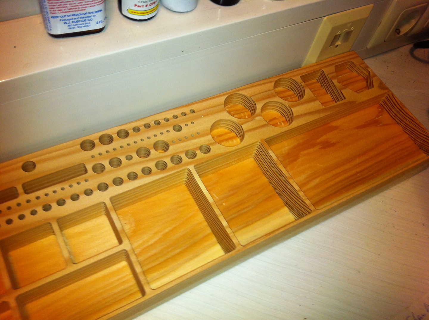 Das Holzfach ist eine praktische Ablage, aber leider zu klein geworden.
