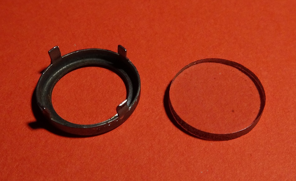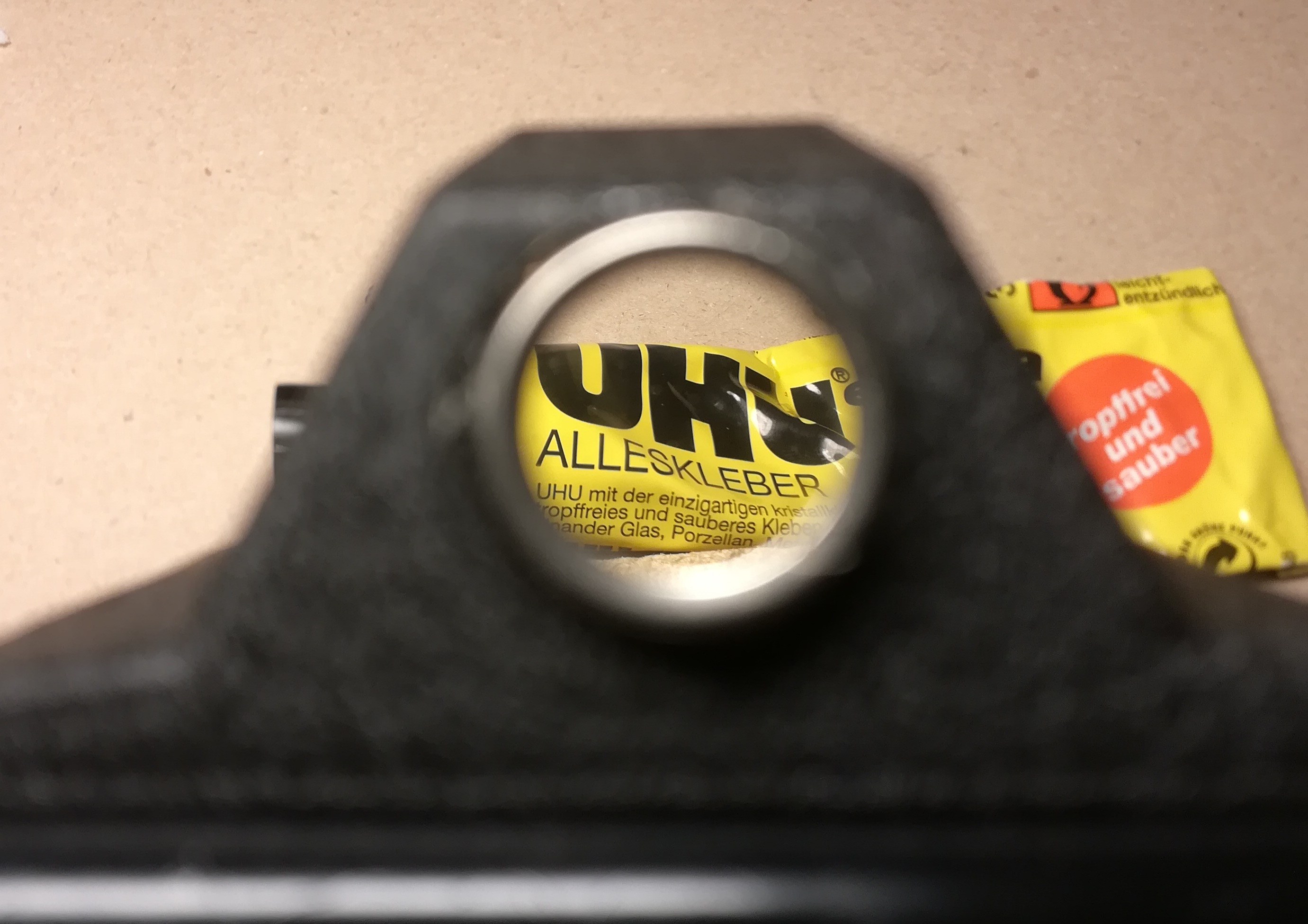 Mit Q-Tipp innen die Frontscheibe gesäubert, ebenso das Okularglas. Beim Einsetzen mit Feinmechaniker-Schlitschraubenzieher beim Hindrücken der Okulareinheit die Laschen "führen". Sicherhaeitshalber wurden drei Mini-Uhu-Kleber-Tröpfchen platziert, um die Einheit sicher zu fixieren. Diese Klebepunkte würden aber ein späteres Neuöffnen nicht behindern.