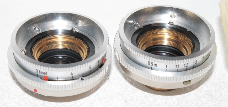 Jetzt begreife ich auch, wozu die völlig funktionslos erscheinende Entfernungsskala an meinem (nicht so ganz perfekten) Retina-Longar-Xenon gut is (das hat übrigens ein völlig anderes Bajonett). Ich hatte die Skala vor Jahren zerlegt, um hinter ihr Geheimnis zu kommen. Die Lösung und gleichzeitig ihr anhand des Teils unlösbares Geheimnis ist - sie hat keines. Sie überträgt einfach - nichts, läßt sich nur im Kreis bewegen. Diese Nicht-Funktionalität-Funktionalität dürfte einzigartig in der Kamerawelt sein. Am nähesten kommen dem die durch Ost-/West-Namensstreit bedingten Zeiss-Front-Namensringe zumindest von selteneren Ost-Zeiss-Objektiven. Schraubt man z.B. einen Ring mit "Apo-T"-Beschriftung ab, was findet sich darunter? Klar, einer mit "Apo-Tessar"! Ob das wohl umgekehrt auch für "Opton"-Ringe gilt?