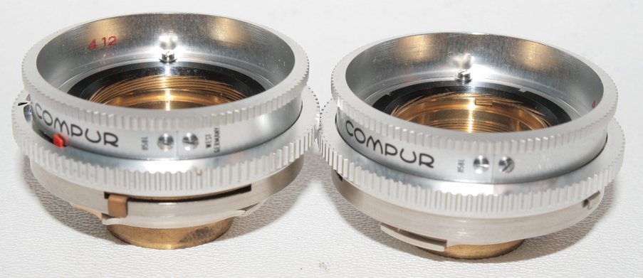 Innendurchmesser des vorderen Gewindes: 22.5mm, des hinteren 18.35mm Größter Aussendurchmesser: 50mm (ich erspare Euch die genauen Gewindeangaben, die sind mit Schublehre nicht zu messen). Wie ersichtlich handelt es sich um Teile, die zu einem (Retina-)Compur gehören, der eigentliche Compur ist auf der anderen Seite des Bajonetts.