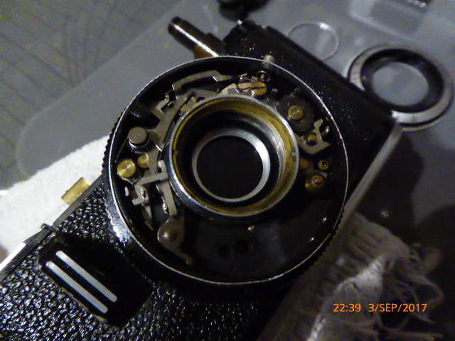 Der Verschluss klemmt. Nach öffnen des Objektives komme ich gut an den Verschluss. Mit Waschbenzin und Wattestäbchen hatte ich keinen Erfolg.