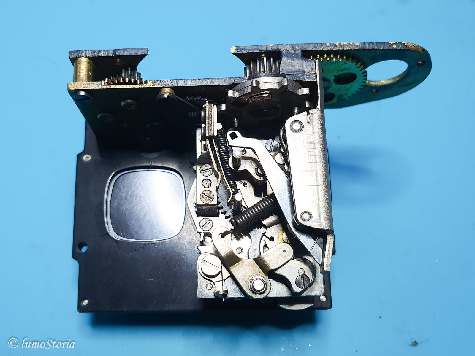 Ich habe die Kamera, soweit es risikofrei ging, zerlegt, gereinigt und neu geölt. Den "Zahnradteil" des Verschlußes habe ich nicht zerlegt (zu viele Federn und unklare Funktion) sondern nur in Isopropanol gebadet und geölt.