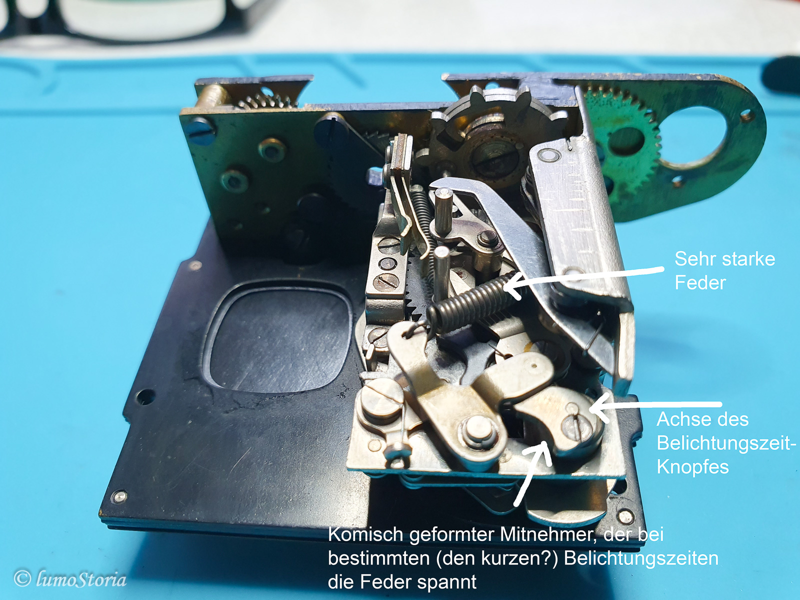 Leider ist der Verschluß ein Wunderwerk der Technik und seine Komponenten interagieren fleißig miteinander. Auch sind keine offensichtlichen Beschädigungen und auch keine Korrosion erkennbar. Es fällt mir deshalb schwer, rein vom "Anschauen" einen Lösungsweg zu finden. Im Internet habe ich dazu leider auch nichts gefunden. Es gibt da zwar einige Disassembly-Seiten, aber keiner wagt sich an das Räderwerk heran.