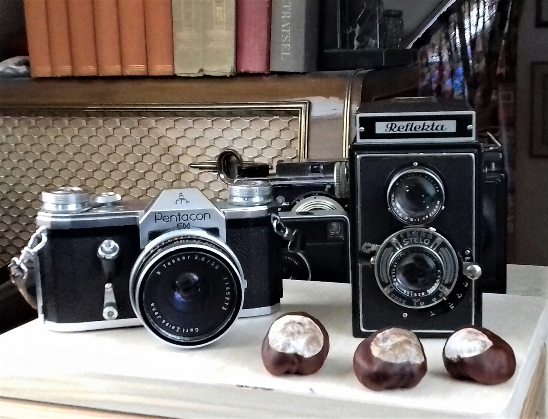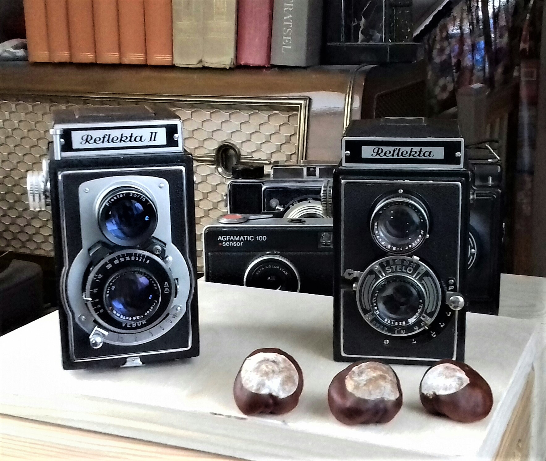 Und weil wir Herbst haben, hier noch zwei hübsche Photographica-Ansichten, auf dem 2. Bild mit der jüngeren Schwester "Reflekta II" von Welta: