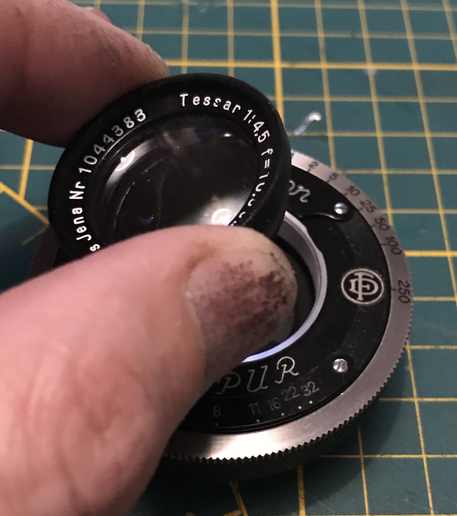 Jetzt müssen wir das die Vorderlinse abschrauben. Beim Ablegen der Linse darauf achten dass das Glas nicht verkratzt wird.