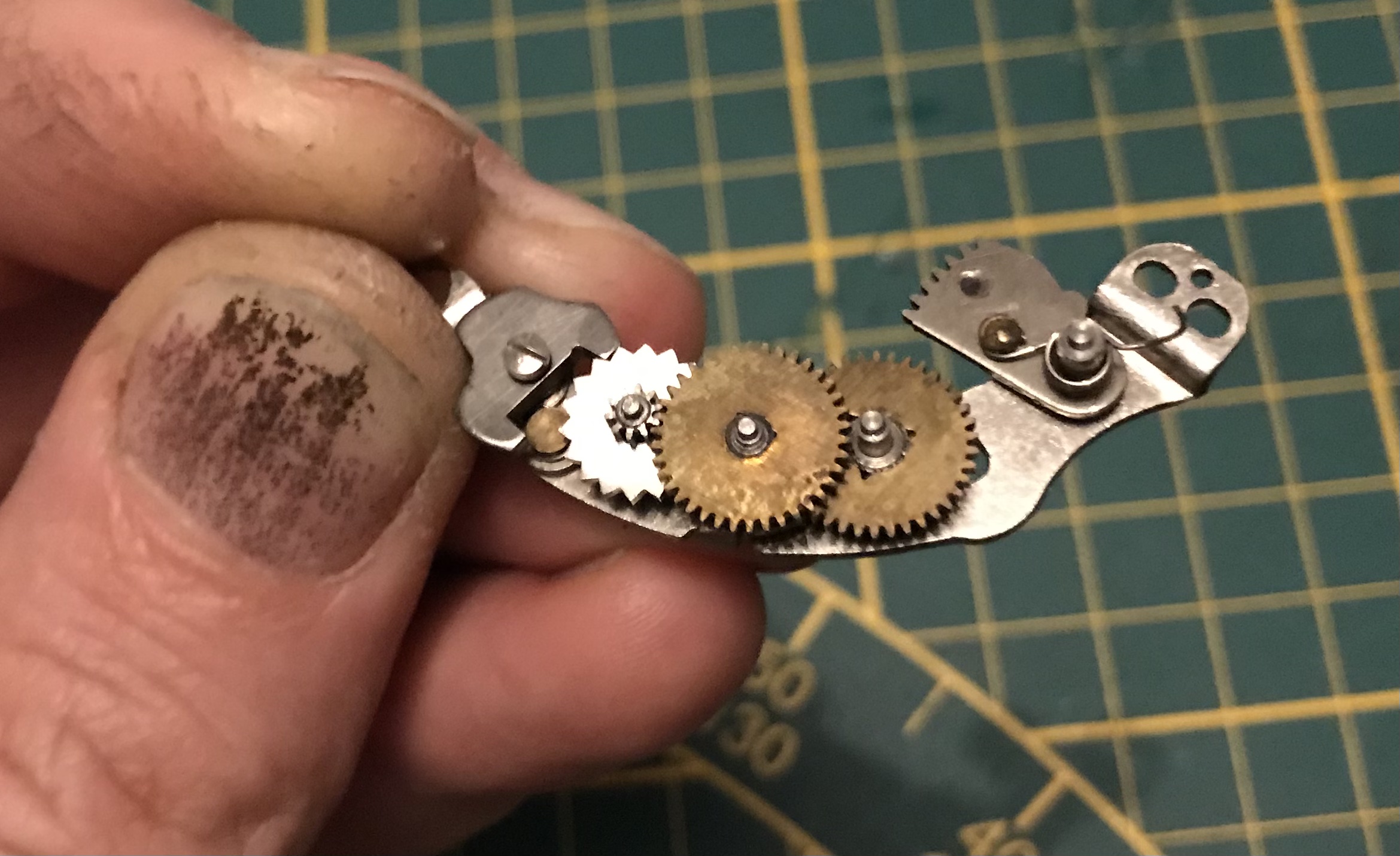 Das war es dann soweit auch schon wieder. Der Zusammenbau erfolgt dann in umgekehrter Reihenfolge, in der Beschreibung sind bereits die Punkte genannt auf die man dabei gesondert zu achten hat. Sollte das Langzeitenwerk doch auseinander geflogen sein hier noch ein Bild wie die Zahnräder angeordnet sind.