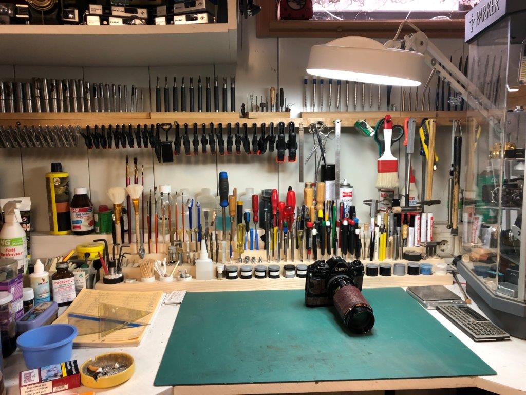 Z.B. die Schiebelehre auf Foto Nr. 10 ist super zum öffnen von Objektivringen (typisch mit 2 Schlitzen) - kann ich nur empfehlen, geht aber auch mit die Gummi auf Foto Nr. 8 Am Foto Nr. 7 sieht man eine Objektivrichtzange aus Messing - zum ausbiegen von verbeulten Filtergewinde.