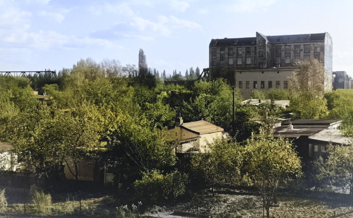 ich finde die nachkoloriert Bilder eigentlich sogar interessanter als die SW-Bilder, für den Uneingeweihten sind die erstmal übersichtlicher – so zumindest meine Meinung. Nur um es klarzustellen, ich selber fotografiere analog fast nur SW. Klar sieht man, dass hier und da etwas vermutlich nicht wirklich so war (scheinbar verglaste Brandwand des Hinterhofs).