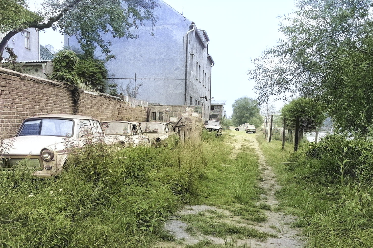 (Aus meiner Sicht ein sehr gelungenes Foto. Wenn man weiß, wie wertvoll ein Trabi in der DDR war, ist das Foto schon ein Zeitdokument eines geschichtlichen Umbruchs. Leider habe ich kurz vor und nach der Wende fast gar nicht fotografiert, worüber ich mich heute noch ärgere.)