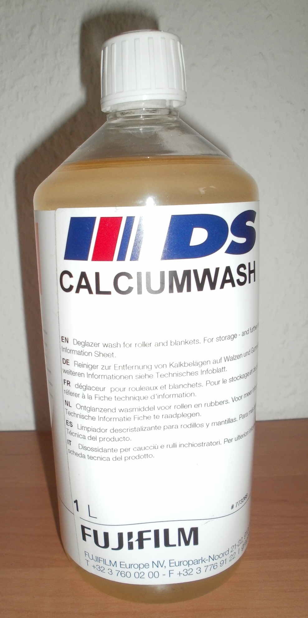 Calciumwash DS ist ein Reinigungsfluid zur Saubermachen und Entkalken von Farbwalzen und Gummitüchern in Offsetdruckmaschinen. Hat mit Fotografie nichts zu tun- auch wenn Fujifilm draufsteht.