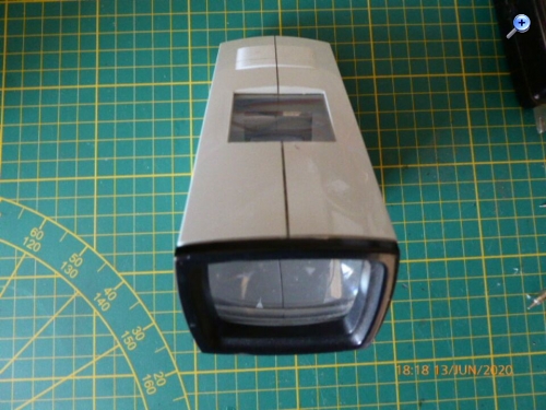 das ein Scharfeinstellgerät für Vergrößerungsapparate und Dunkelkammerarbeit. Man stellt es auf den Vergrößerungsrahmen, so dass das Licht von oben ins Gerät fällt. Dabei berücksichtigt das Gerät seinen Abstand zum Fotopapier. Mit der eingebauten Lupe stellte man scharf und konnte nun belichten.