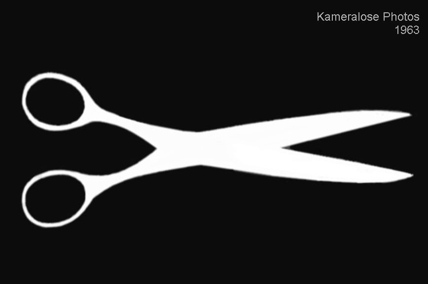 aus heutiger Sicht etwas naiv und simpel: Photos ohne Kamera. Dabei wurde in der Dunkelkammer bei Orange-Licht auf ein Blatt Photopapier ein Motiv gelegt (in diesem Fall eine Schere). Dann wurde kurz von einer Lampe direkt über dem Papier Licht aufgestrahlt und dann entwickelt.