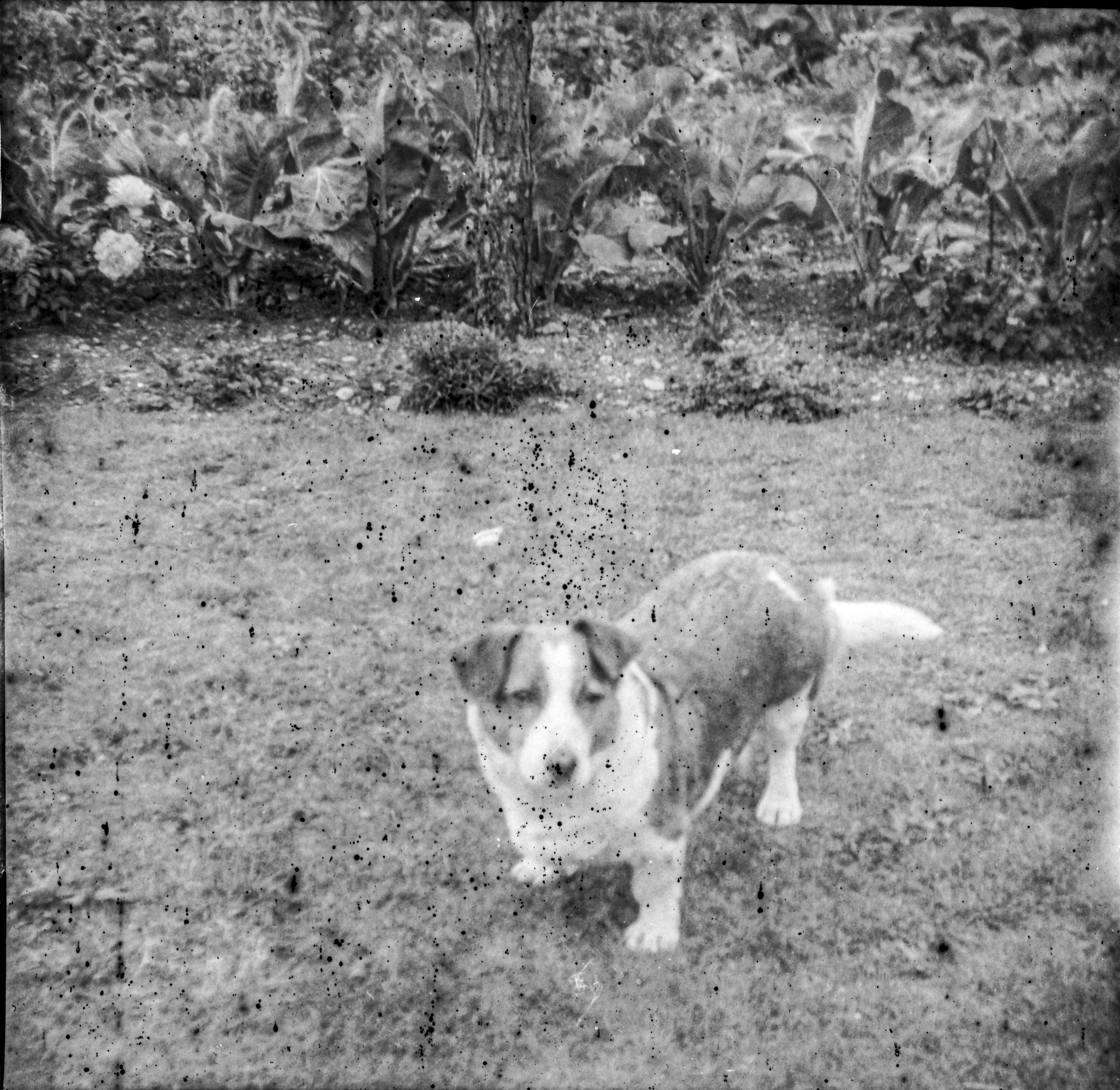 Hallo, ich habe mir von der Insel eine Ful-Vue von 1946 bestellt, und als sie ankam war ein Film drinne, bereits voll, und zum Glück schon soweit transportiert, das beim aufmachen nix passiert ist. Ich habe also den Film nach meine faulen Methode entwickelt und eigndlich bin ich nicht unzufrieden, aber vielleicht ginge es ja noch besser, der Film hat stellenweise Streifen die ich dem transport in der Kamera zuschreibe, und leider haben viele Bilder kleine schwarze Flecken. Natürlich ist der Film uralt, den Bildern nach, würde ich denken das er aus der Verkaufszeit der Kamera stammt, und eben seitdem in der Kamera war. Ich hätte gerne eure Meinung, sind die Fotos schlecht entwickelt, oder ist eben der Film so alt, die Bildschärfe ist natürlich Kamerabedingt Sö erstmal ein Bildchen von der Kamera ( Ich musste sie aus ihrer "original" Tasche Quasie herausschälen, die ging dabei leider ziemlich flöten ) Sö und jetzt die Bilder, Familie mit Hund: