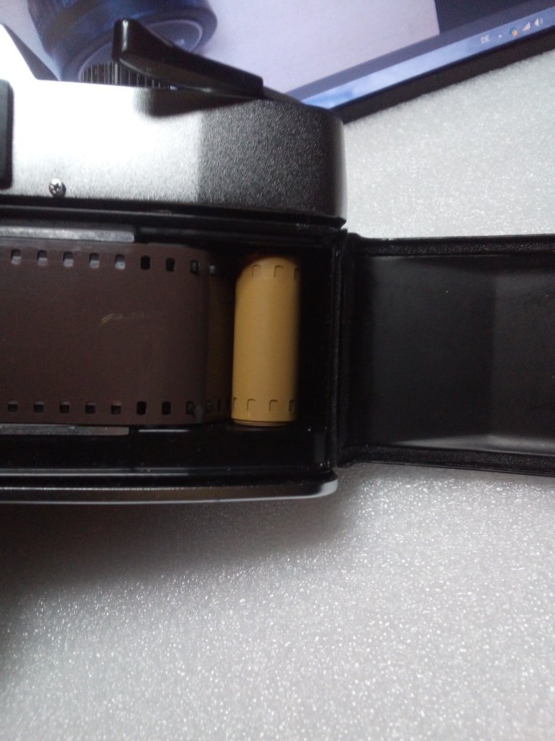 so sieht es bei meiner Carena SRH 1001 (baugleich Petri FT 1000) aus. Wie man sehen kann, wird der Film entgegen der Drehung wie er aus der Patrone kommt aufgespult. Das macht es (mir) schwerer nachher den Film in die Entwicklungsspule zu bekommen da der Anfang des Filmes nun nach oben gewölbt ist. Bei meiner Revue ML (Praktica MTL 5B) sieht es ähnlich aus. Allerdings kann ich das hier nicht zeigen, da diese Kamera gerade mit einem frischen Film bestückt ist.