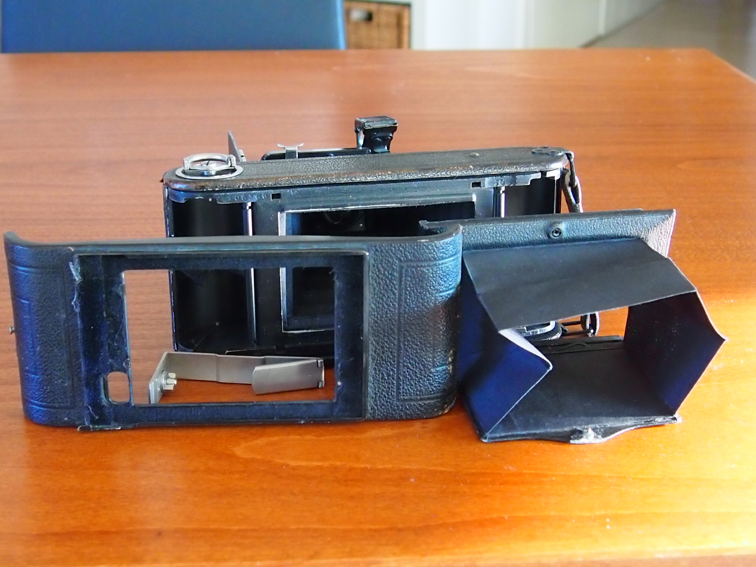 Es scheint so, wie ich ursprünglich vermutet hatte - eine "normale" 6x9 mit Entfernungseinstellung via Laufboden. Das ist übrigens alles noch sehr gängig und lässt sich perfekt bewegen/einstellen an meiner Kamera. Der fehlende Einschub (Lichtschutz ) und der noch fehlende Filmhalter sind nun das Problem. Beim genauen Hinsehen, sollte ich diese Teile nicht durch Zufall noch bekommen, sind mit etwas Tüftelei auch selber herzustellen - zur Zeit nicht meine erste Priorität aber aufgeben tue ich nicht. Ich werde davon berichten und die Fotos einstellen...LG Rolf