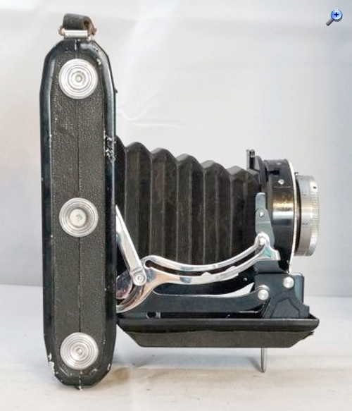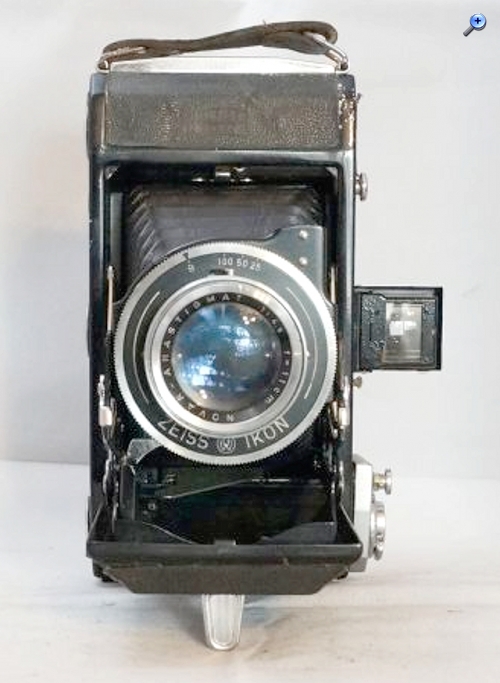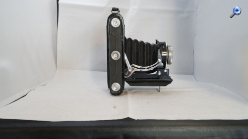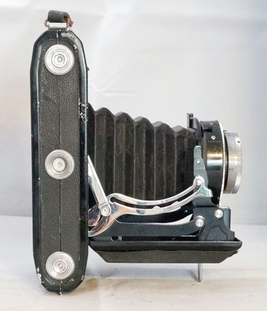 Leider fehlt bis auf das Zeiss Ikon Logo jede Namensgebende Beschriftung. Ich denke das es eins der früheren Modelle ist, da nur Aufnahmen im Format 6 x 9 möglich sind. Sie hat sicher schon bessere Tage gesehen, aber der Verschluss ist noch in Ordnung ( was längst nicht bei allen meinen Kameras der Fall ist ) wobei die Zeiten vielleicht nicht mehr stimmen, das kann ich nicht sagen.