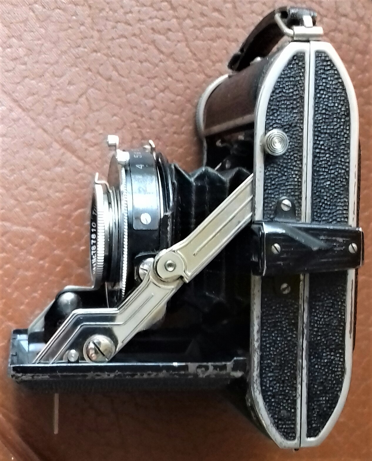 Der Rotfensterverschluss ist ins Gehäuse eingelassen wie beim Exemplar von Heiko. Die Bedienungsanleitung stammt vom Februar 1938. Das ist das Jubiläumsjahr der Fa. Baldeweg; aus diesem Anlass brachte man auch die Kleinbildkamera Jubilette heraus. Vielleicht ist auch diese besser ausgestattete Rigona eine Sonderserie?
