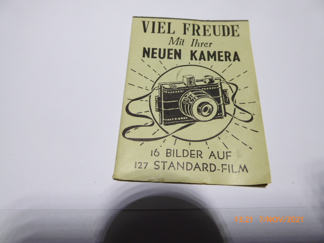 Hallo, ach sorry falsch gesehen, ioch habe auch so eine, allerdings für 620 ger Film, 127 ger Film kann man ja sogar noch kaufen :-), wenn auch Sauteuer, aber man kann auch 135 Film auf eine Entsprechende Rolle mit Papier ziehen, auch wenn dann die Transportlöcher mit Belichtet werden. Für das Papier hab ich sogar noch eine Din A4 vorlage ( damit man weiss wo die Bilder kommen ) dann einfach 135 ger FIlm auf die Rückseite Kleben ( entsprechend normalem Rollfilm, als nur vorne ein Klebestreifen ) von hinten Aufrollen und einlegen, und losknipsen, das habe ich mal mit ner Derbi versucht, hat natürlich für den ersten versucht recht durchwachsene Ergebnisse gebracht, aber gezeigt das, dass Prinzip funktioniert. Spulen habe ich noch auf vorrat, da könnte ich aushelfen.