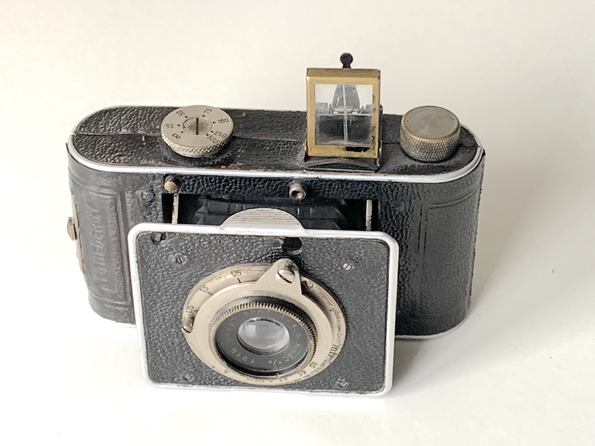 zu den 3x4-Rollfilmkameras der frühen 1930er Jahre gehört auch die Spreizenkamera mit Schlitzverschluss Derby des Berliner Herstellers Foth. Gemessen am Vorkommen auf dem Gebrauchtmarkt scheint sie recht erfolgreich gewesen zu sein. Es gibt eine Reihe von Varianten, die sich hinsichtlich der Lichtstärke, der Ausstattung mit Selbstauslöser, der Gestaltung der Rotfenster, des Suchers, der Andruckplatte und der Beschriftung unterscheiden; diese Typen sind bei camera-wiki.org sorgfältig differenziert: http://camera-wiki.org/wiki/Derby