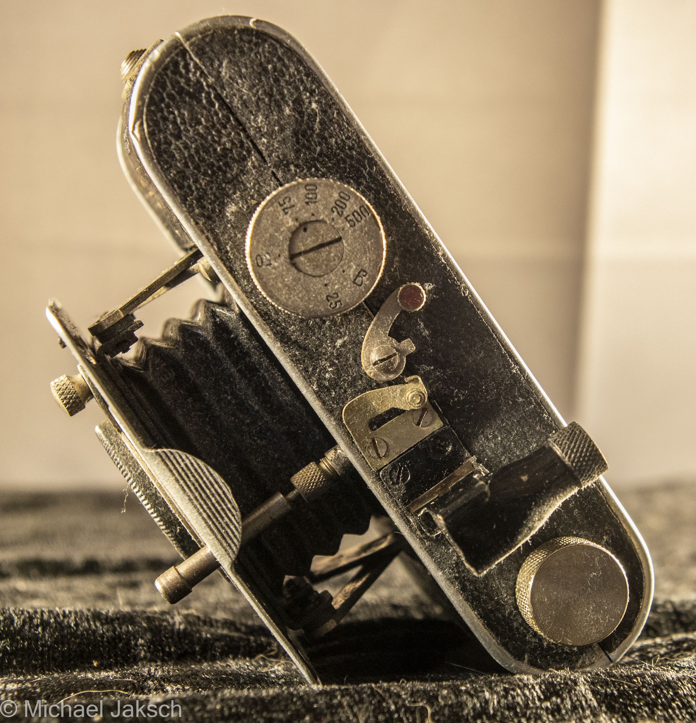 ich habe 2 von den späteren Modellen, bei einer war sogar noch der Auslösestift dabei. der durch das mittige Loch in der Frontplatte geführt wird. DIe Kameras habe ich bei dem Experiment 35mm Film in 127ger Kamera benutzt. Mit mäsßigem Erfolg, aber immerhin, die weißen Fleckem hatte ich auf allen Bildern möglicherweise Löcher im Verschluss ( Tuch). Andere Fehler sind meiner, damals, mangelnden Erfahrung mit so alten Kameras zuzuschreiben.