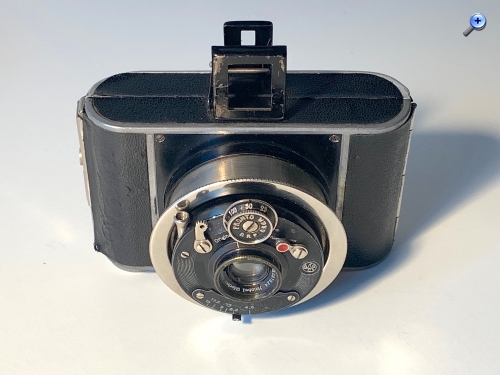 Die Kamera erschien mir wegen der einfachen Ausstattung, des insgesamt mäßigen Zustands und einer offensichtlichen Modifikation (Näheres unten) bislang nur bedingt attraktiv; da es sich aber um das bislang einzige dokumentierte Exemplar dieses Modells zu handeln scheint und dieses ansonsten mit der Thowette übereinstimmt, soll es vorläufig die Lücke in meiner Sammlung schließen. Die Kamera soll hier vorgestellt und eingeordnet werden.