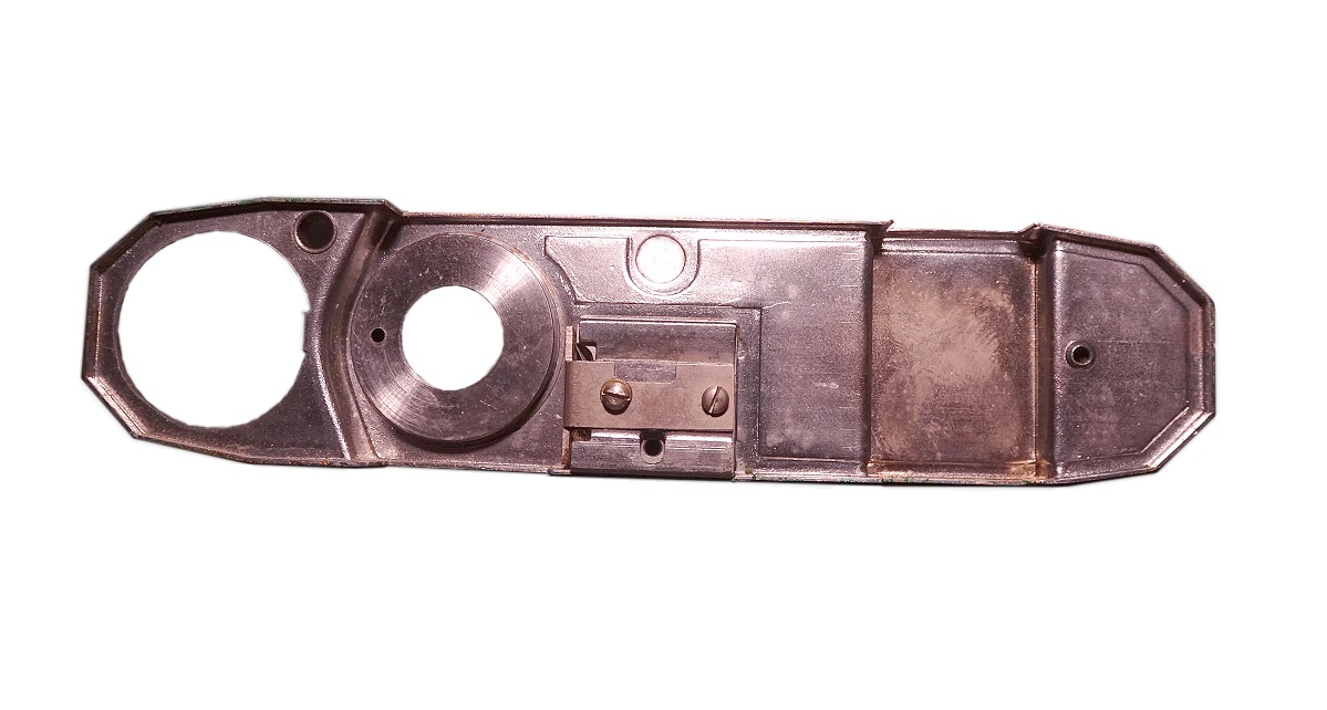 Es ist darauf zu achten, dass einige Bauteile bei der Demontage nicht verloren gehen, insbesondere ein kleiner Stift (für den Drahtauslöser) im Auslöserknopf (5). Weiter hat dieser Knopf eine kleine Seitenauslage mit einer instabilen Halterung. Diese Halterung ist auch mit Aufmerksamkeit zu behandeln.