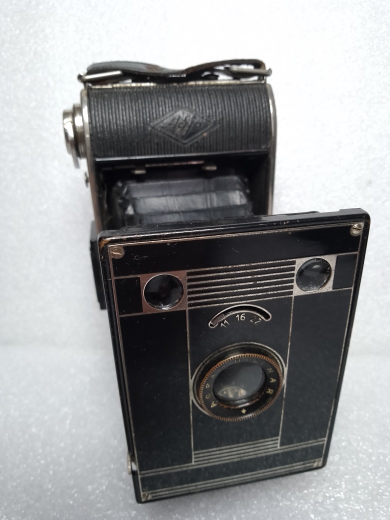 zu erwähnen wäre noch, dass die BILLY CLACK 74 mit 2 verschiedenen Belederungen ausgeliefert wurde. In der ersten Version (1934 - 1937) wurde das Kameragehäuse mit Glattleder bezogen. Über der AGFA-Raute sind Streifen eingeprägt. Die von Heiko vorgestellte BILLY CLACK 74 stammt aus dieser Serie. In der zweiten Version (1938 - 1940) ehielt das Gehäuse eine Belederung mit Fischgrätenmuster.