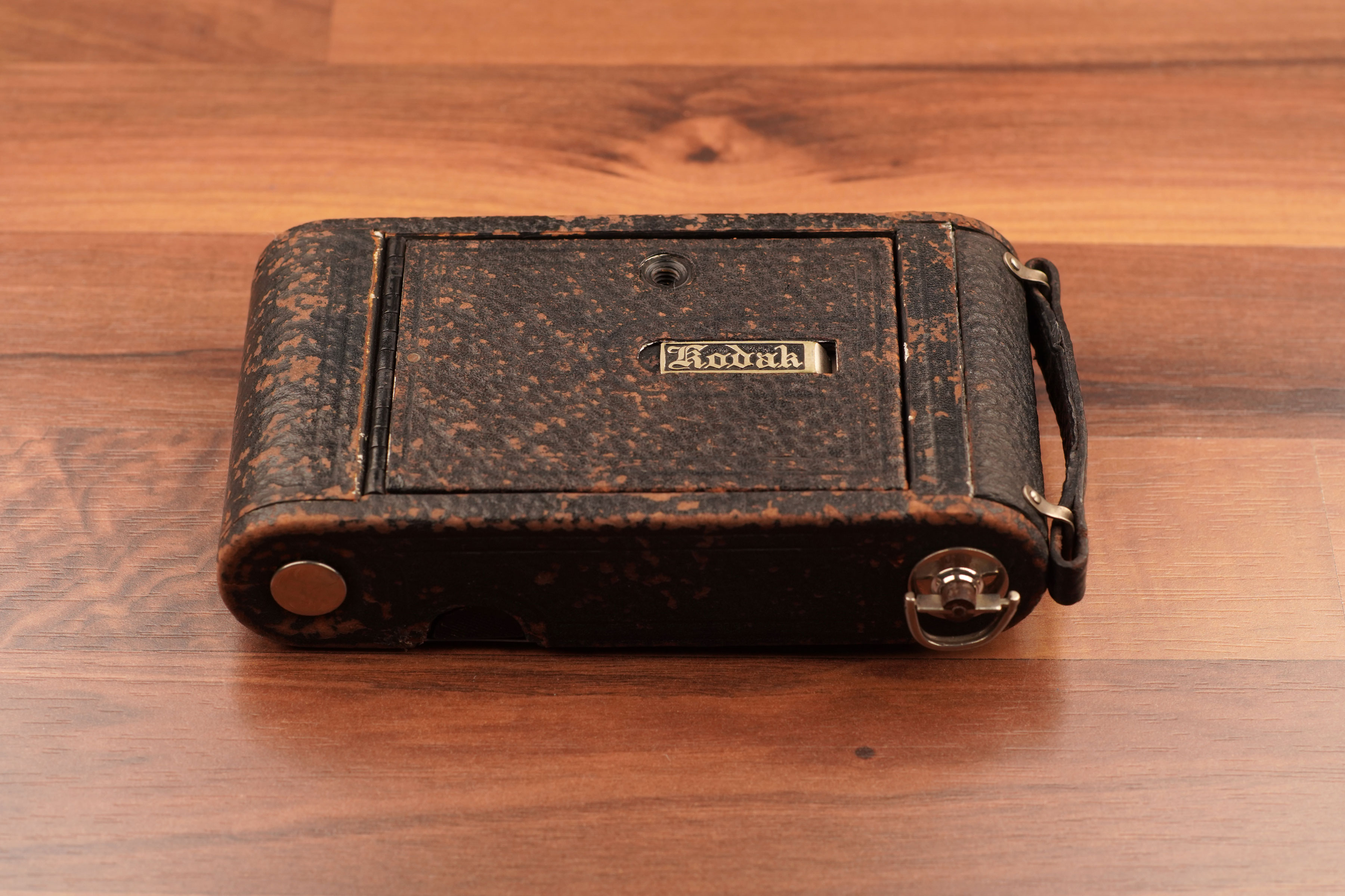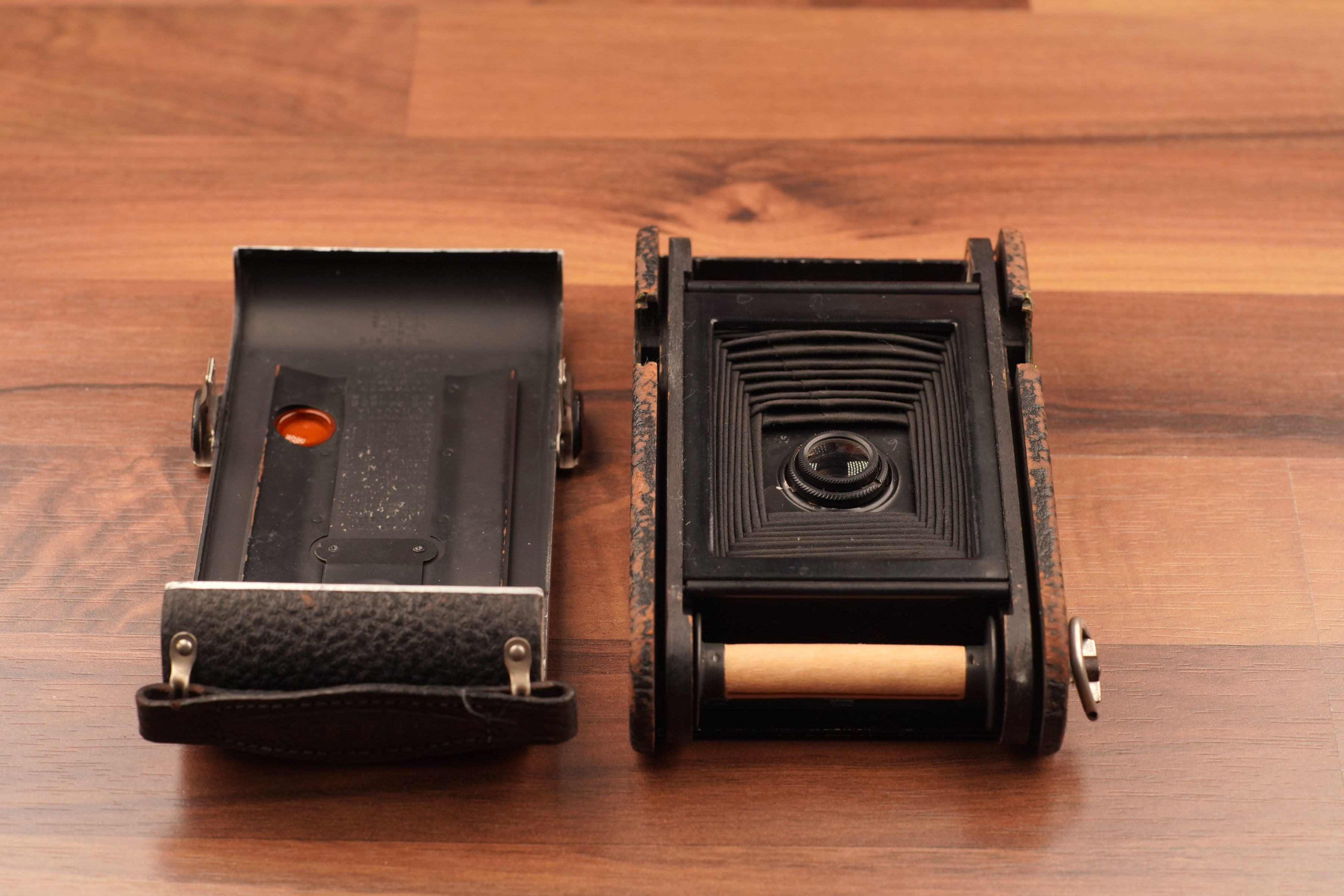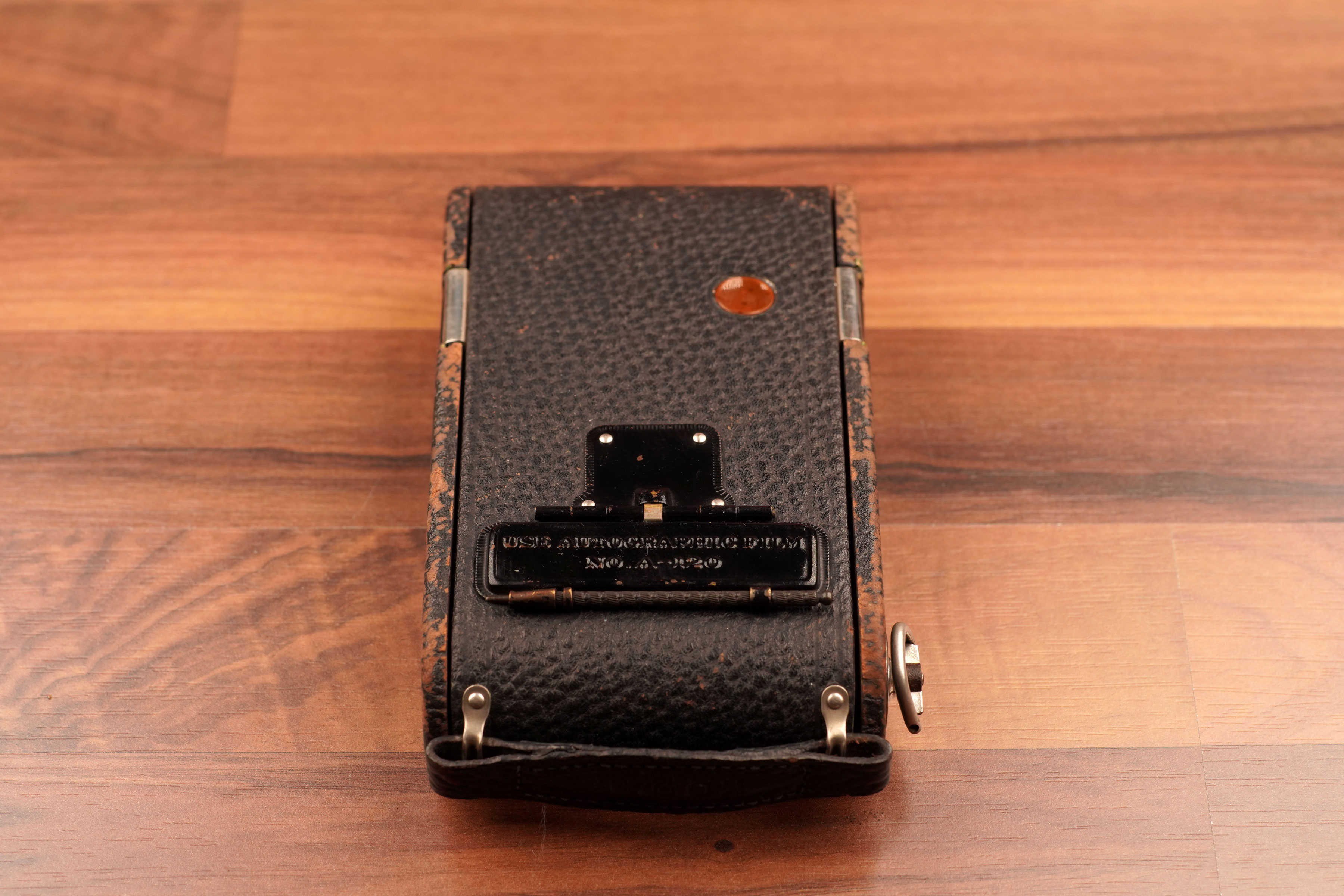 Hallo, schöne Kamera, ich mag die Front von den Kodaks aus der Zeit, dafür das es den Autographischen Film nur recht kurz gab, gab es einige Kameras dafür. Ich versuche immer noch ein paar Negative aufzutreiben.