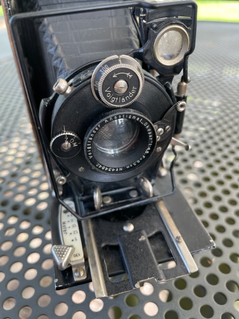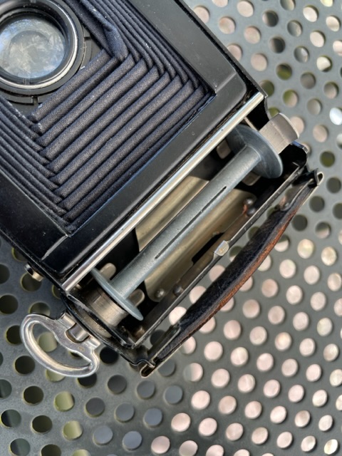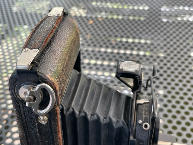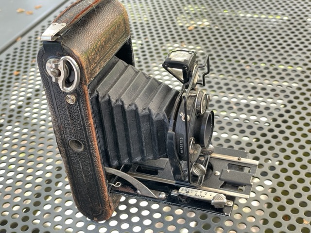Der Brennweite 8,3 cm nach zu urteilen, handelt es sich bei Deinem Exemplar um eine Kamera im Format 5x8 (für 129er Film). Gebaut wurde die Kamera im Zeitraum 1927–32; der Rad-Compur deutet auf ein frühes Baujahr hin. Der Preis für die Kamera mit Skopar betrug 75 RM. – Offiziell hieß die Kamerareihe zwar "Rollfilm", in den Katalogen wurde dieses kleine Modell aber infoffiziell als "Sportkamera" bezeichnet. (Angaben nach Prochnow Bd. 3, PR 3728).