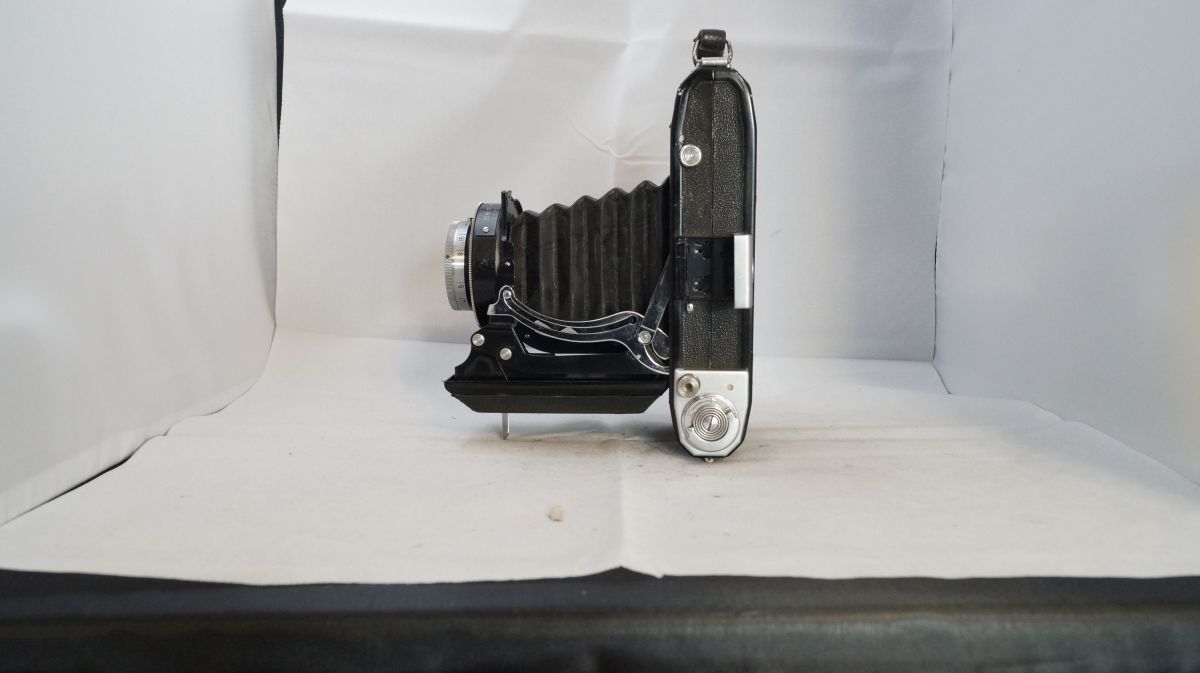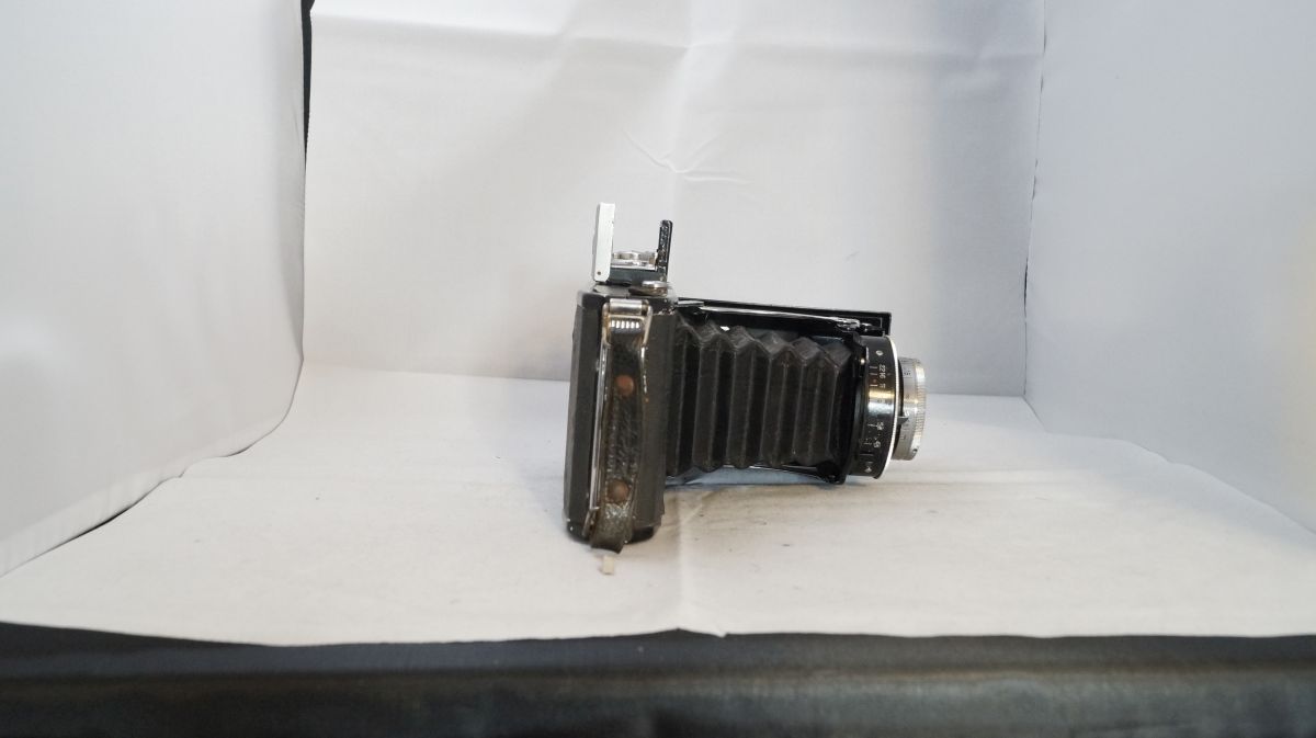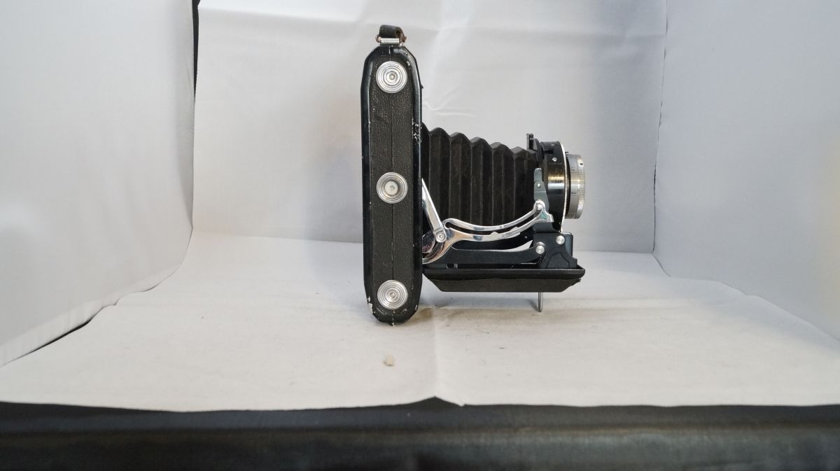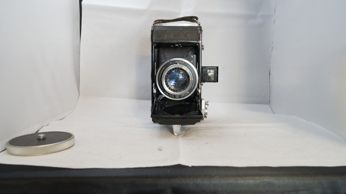 Leider fehlt bis auf das Zeiss Ikon Logo jede Namensgebende Beschriftung. Ich denke das es eins der früheren Modelle ist, da nur Aufnahmen im Format 6 x 9 möglich sind. Sie hat sicher schon bessere Tage gesehen, aber der Verschluss ist noch in Ordnung ( was längst nicht bei allen meinen Kameras der Fall ist ) wobei die Zeiten vielleicht nicht mehr stimmen, das kann ich nicht sagen.