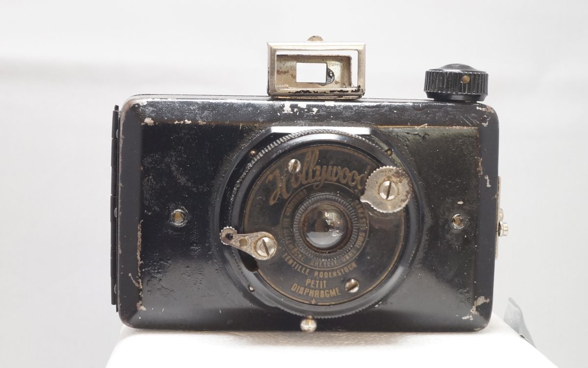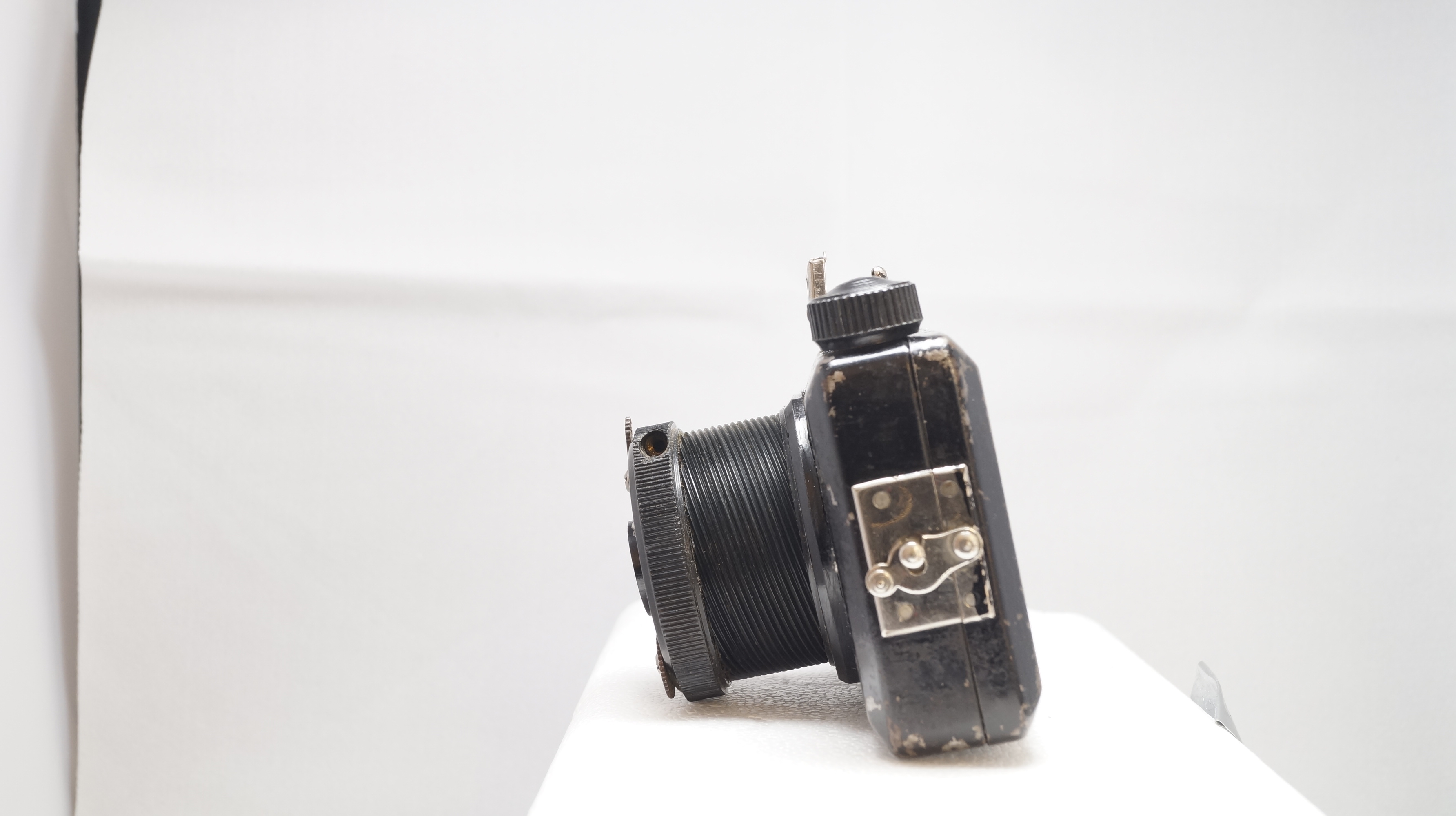 Hallo, heute stelle ich meine Hollywood Kamera von Ruberg und Renner vor. Die Hollywood war die Exportvariante der Dixi aus dem selben Haus. Leider ist sie etwas mitgenommen, aber immerhin noch in Funktion, und in ihrem alter braucht man ja auch nicht mehr neu auszuschauen. Innen liegt ein Stück, der Rückwand angepasstes Filz wohl als Andruckplatte, ob das allerdings original ist, kann ich nicht sagen, meine Ruberg I hat eine aus Blech . Auch ist bei meiner Kamera das ausgeschraubte ( sagt man das so ) Objektiv um 90° verdreht, ob das ein Produktionsfehler ist, oder nachträglich passiert ist, kann ich nicht sagen, fest steht das, das Objektiv voll ausgefahren ist, ließe sich bestimmt auch richten, aber ich lasse es erst mal.