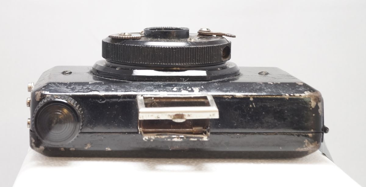 Zu der Einlage aus Filz habe ich leider weiter nichts gefunden, da es aber eigentlich keinen Sinn macht eine Kamera mit so etwas auszustatten, gehe ich davon aus das sie zum Modell gehört ( an der Rückwand sind auch keine Spuren zu erkennen das eine andere Andruckplatte mal vorhanden war, was bei einem Body aus Blech ja in jedem Fall zu sehen währe.