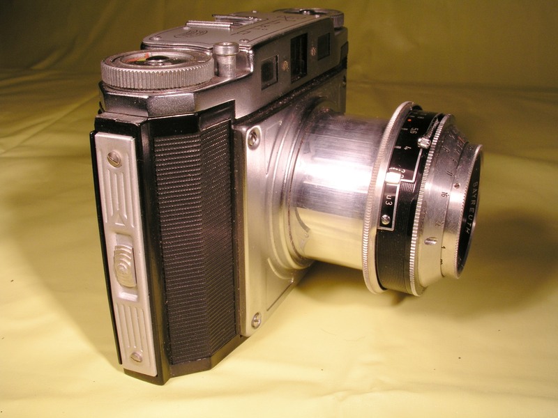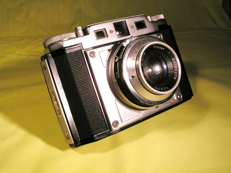 Baujahr: 1954 bis 1957 Format: Rollfilm 120 Objektiv: Praxar 75mm 2.9 von Steiner-Optik GmbH, Bayreuth. Steiner hat damals ähnliche Kameras unter den Namen Steinette, Brelland und Hunter 35 gebaut und ist heute der weltgrößte Hersteller von militärischen Binokularen. Aufnahmen: 12 Blenden: 2,9 - 22 Auslöser: Mit Drahtauslöser-Anschluß Verschluss: Pronto. Zeiten 25, 50, 100, 200 und B, separater Spannhebel Blitz: Blitzsynchronisationsanschluss Filmzählwerk: rotes Fenster in der Rückwand, Entfernungsmesser: ungekuppelt, mit separatem Einblick und daher weiter Messbasis sowie weniger Verkleinerung Selbstauslöser: ja, unten am Verschluß Filmtyp-Merkscheibe: ja Abmessungen: ca. 14 x 9 x 7 Zentimeter (eingeschoben) Gewicht: ca. 500gr. Besonderheiten, Sonstiges: Ganzmetall, Springtubus auf Knopfdruck, Gehäuseauslöser, Doppelbelichtungssperre