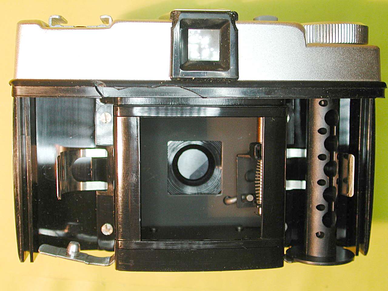 Auch diese Isoly hat eine gewölbte Filmbahn, womit der Bildfeldwölbung des Objektivs entgegengewirkt wird und gleichzeitig eine federnde Andruckplatte oder kratzfreie Rollen für den eingelegten Film eingespart wurden:
