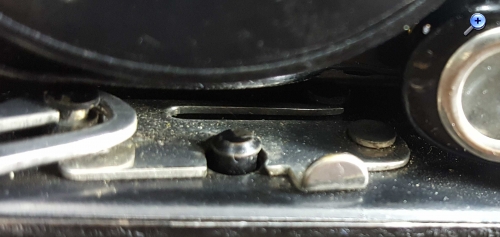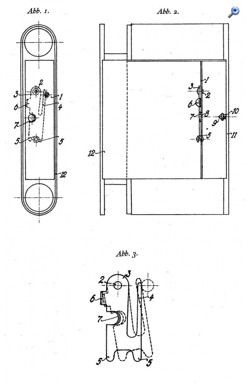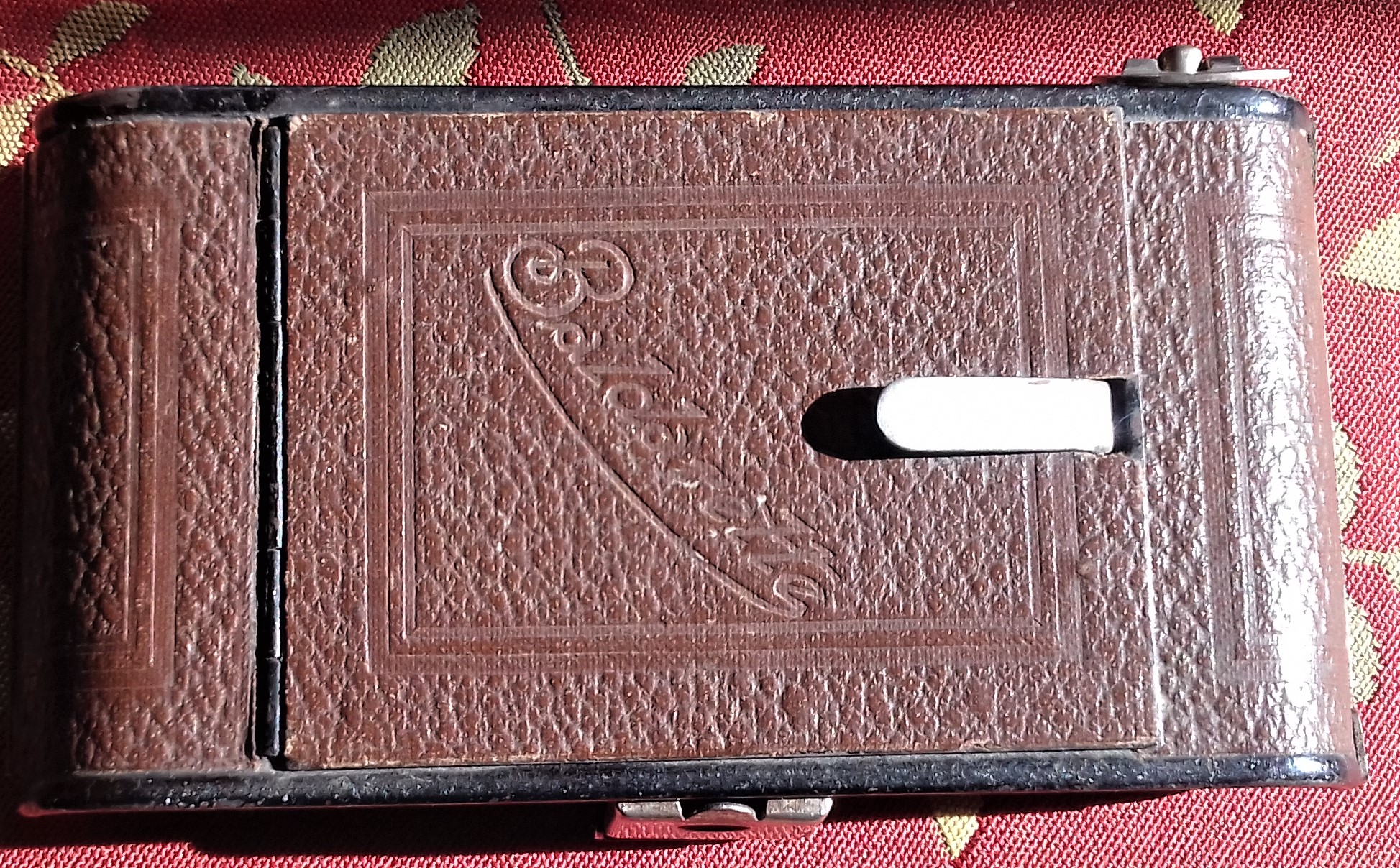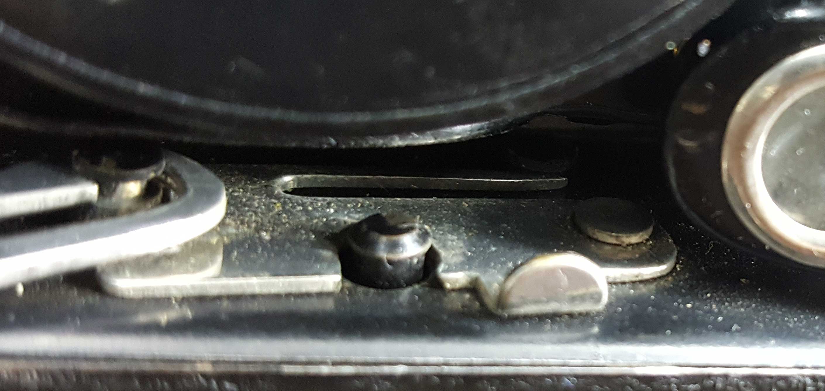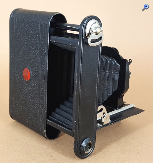 Noch eine Bemerkung zum Modell: Von den mir bekannten 5x8-Kameras macht die Baldarette/Verette II den klapprigsten Eindruck. Sicherlich ist das vorgestellte Exemplar auch schon reichlich ausgenudelt, aber das liegt auch an der Konstruktion: Bei den Laufschienen handelt es sich um im Winkel 45° gebogene Metallstreifen, über denen der Schlitten läuft. Da besteht schon ein beträchtliches Spiel. Vermutlich sind die späteren Varianten mit Kippstandarte und Radialhebel besser. Ganz interessant finde ich hingegen die Arretierung des Gehäuses mit dem federnden Hebel.