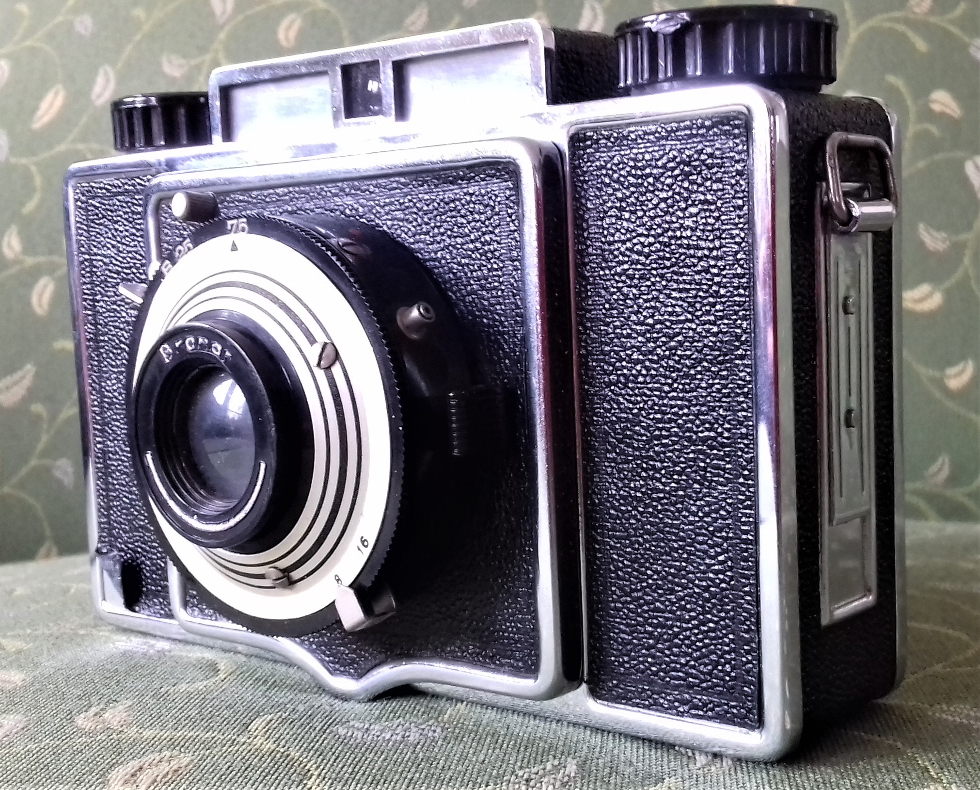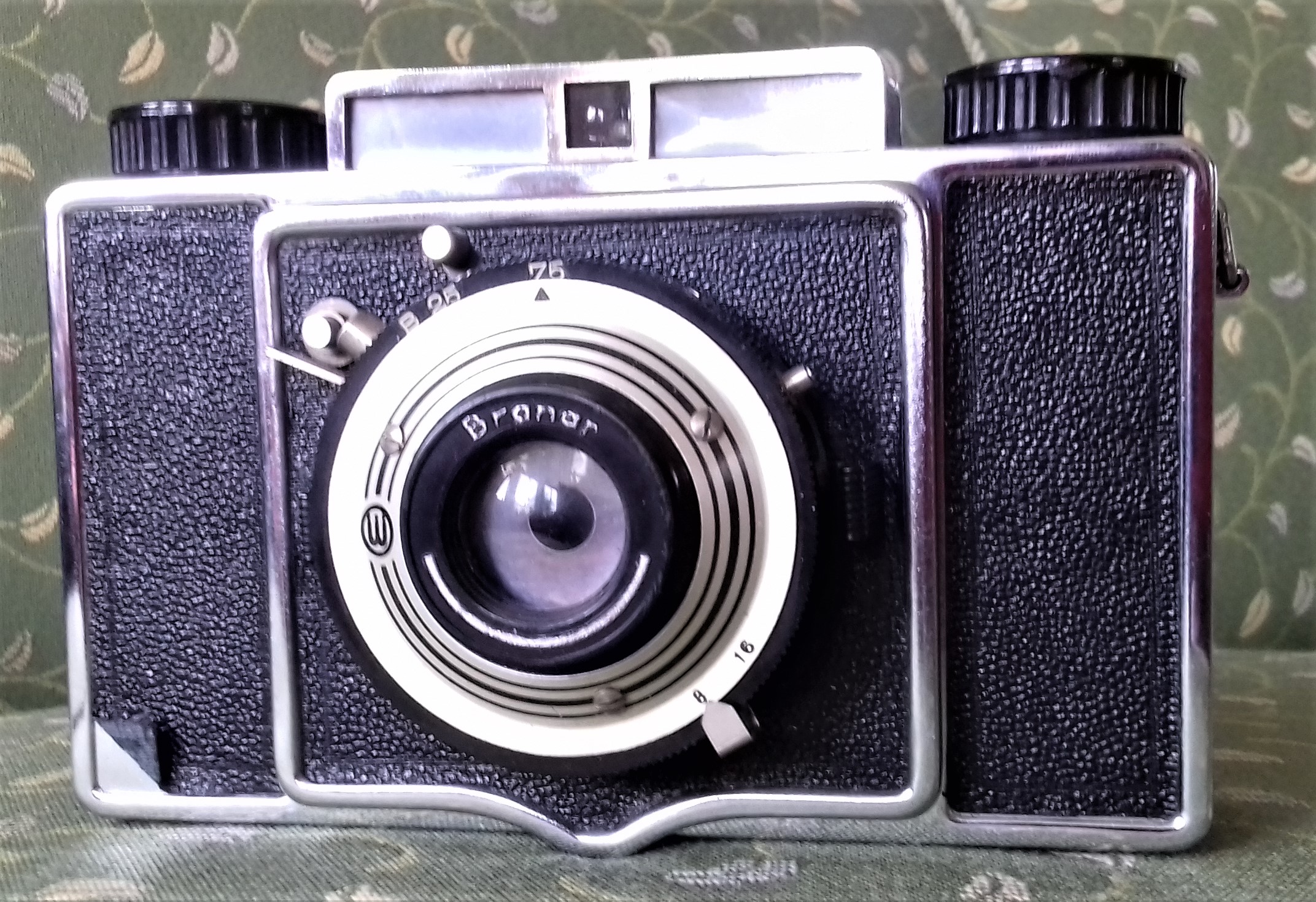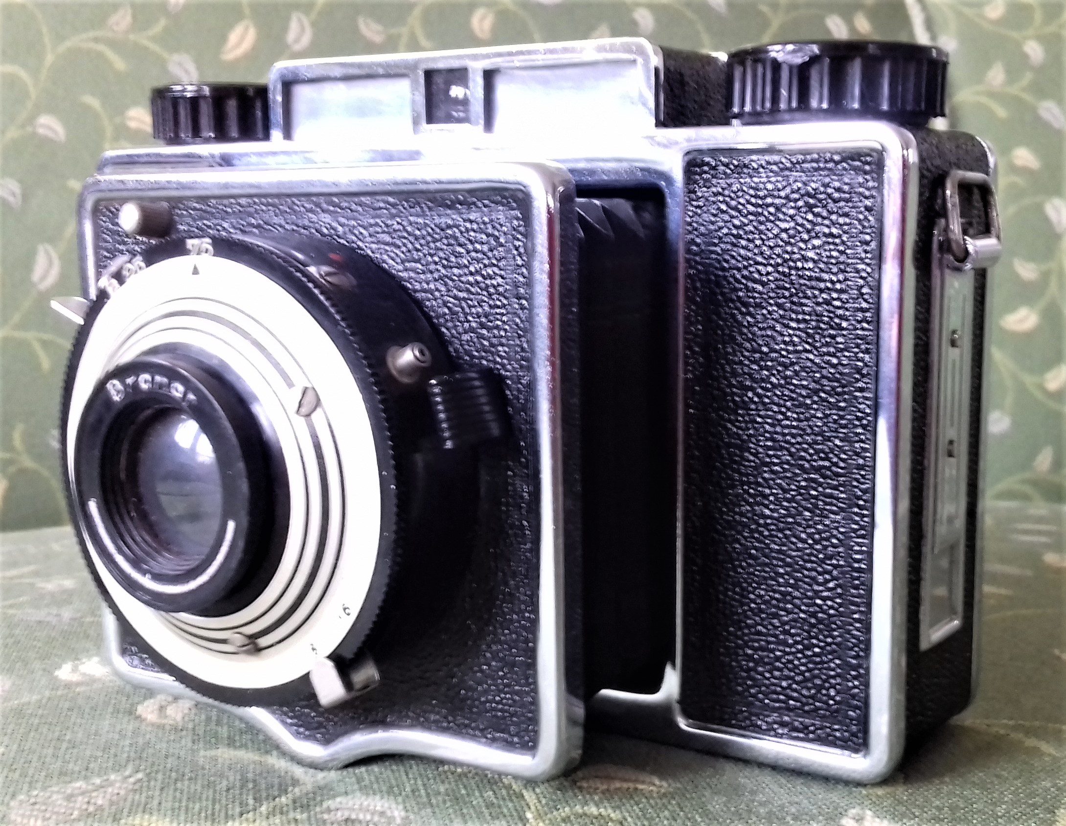 Die Kamera wirkt insofern ziemlich „angeberisch“, obwohl sie optisch und verschlusstechnisch sehr simpel ist. Sie ist eigentlich eine faltbare Box. Da boten die „Paxina“-Modelle von Braun deutlich mehr Einstellmöglichkeiten und hatten auch bessere Objektive.