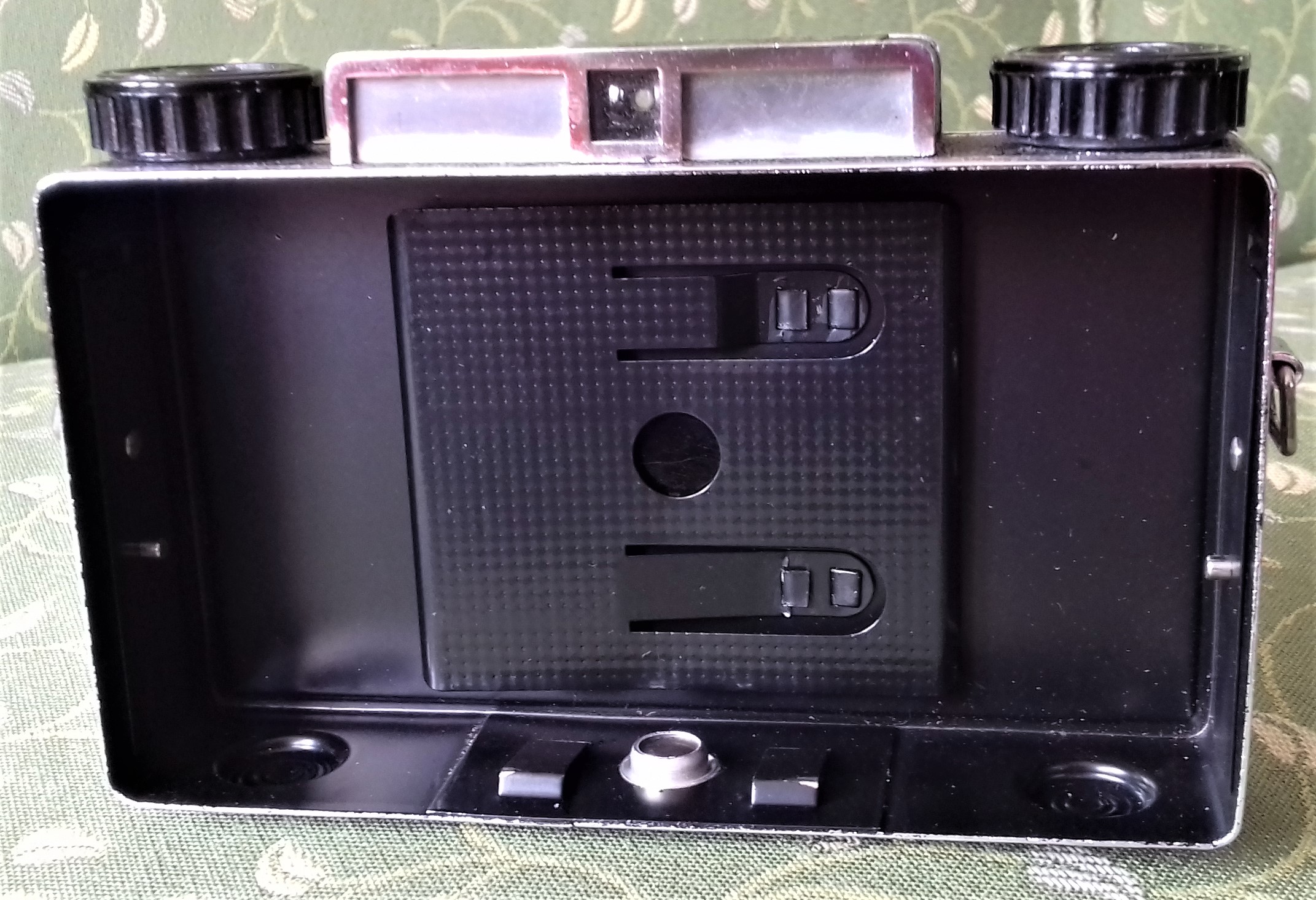 Hallo, Die Imperial Boxen, es gab ja mehrere, hatten ja auch den imposanten Namen und waren von recht einfacher Machart. Und so einfach ist die Kamera jetzt auch nicht, sie hat immerhin 2 Blenden, 2 Verschlussgeschwindigkeiten, einen Focus, einen Blitzanschluss und Zubehörschuh und, wenn ich das richtig sehe, ein verschließbares Filmfenster. Im prinzip ist die Ausstattung ( vom verschließbaren Filmfenster abgesehen, identisch zu der meiner Paxina IIb mit rundem Springtubus. Die Belichtungsmesser hatten sicher einen Sinn, allerdings wird der sich uns ohne eine Bedienungsanleitung wahrscheinlich nicht erschliessen. Auf jeden Fall hast du da eine interessante Kamera