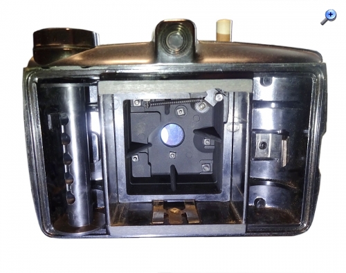 Rechts kommt die volle Filmrolle hinein. Der Papier/Film-Streifen wird via Bildfenster nach links gezogen und in der Leerrolle eingefädelt. Links wird der Film nach jeder Aufnahme weitergewickelt. Nach allen 12 Aufnahmen wird links die Rolle entnommen, zugeklebt und zur Entwicklung gebracht. Schließlich wird die leere Rolle von rechts nach links gewechselt.