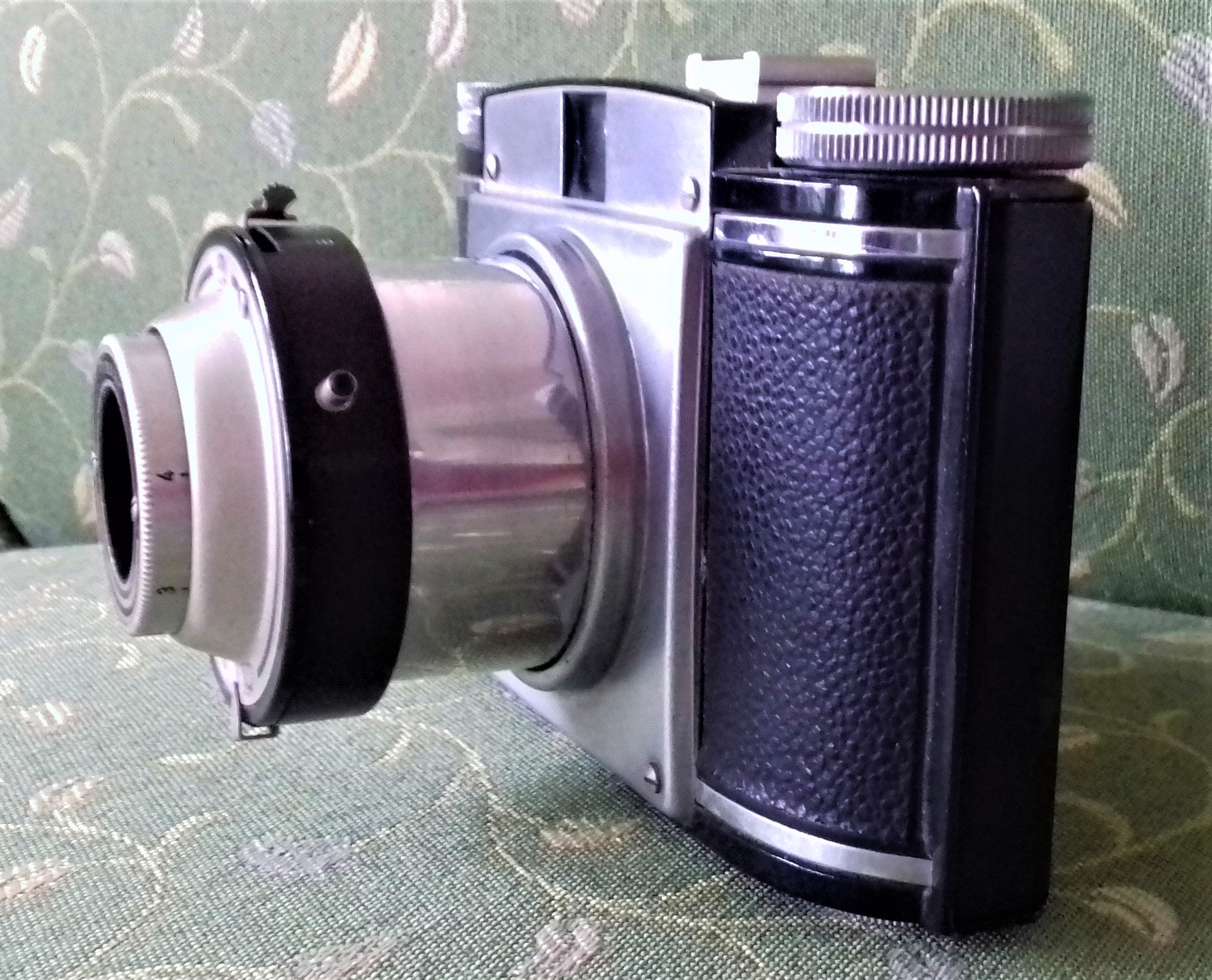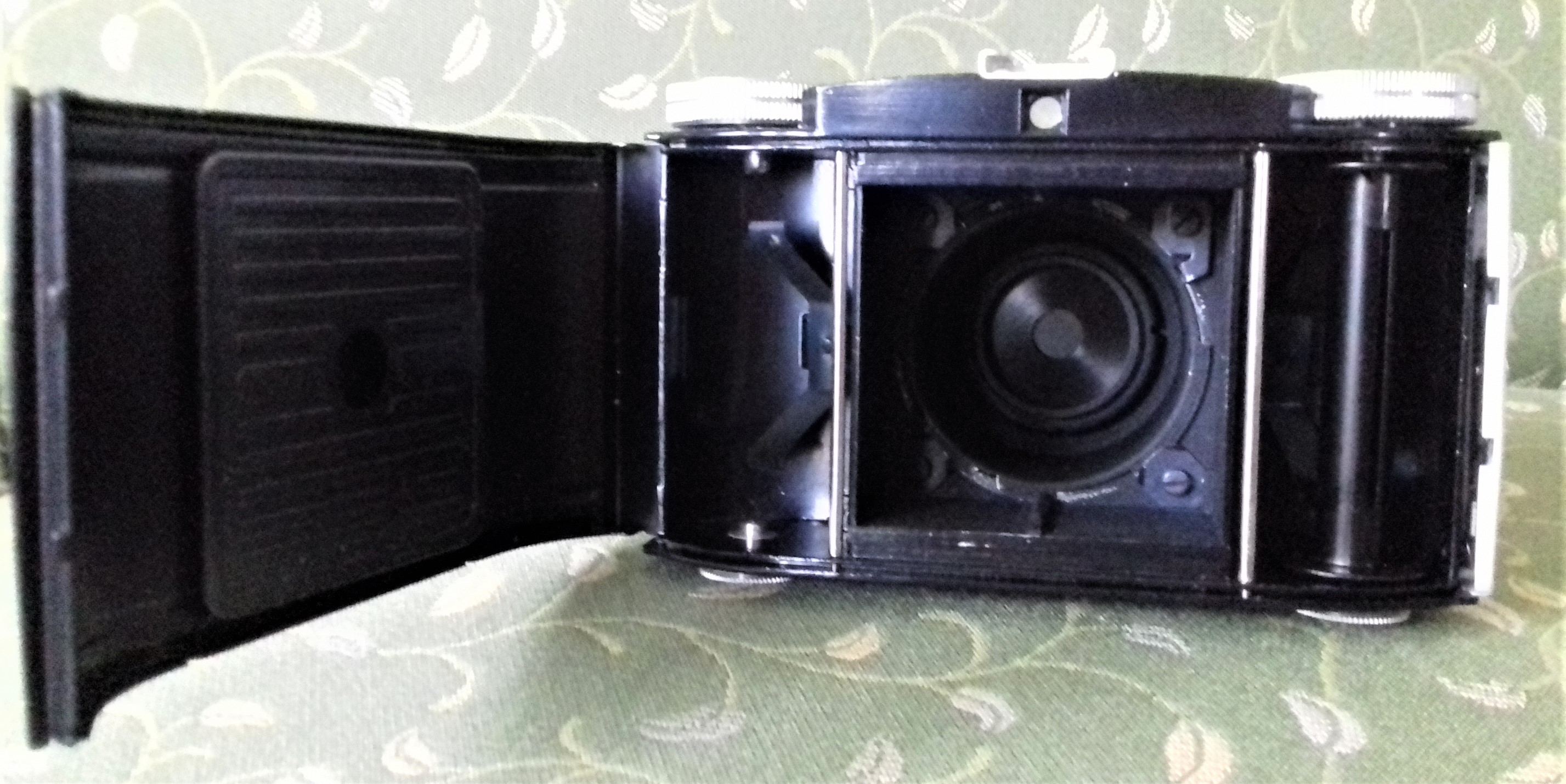Es handelt sich um eine hübsche, damals recht preisgünstige und kompakte Mittelformatkamera für ‚Gelegenheitsknippser‘, die bei gutem Licht brauchbare Bilder mit der typischen ‚Farb-Patina‘ der 50er-Jahre macht.