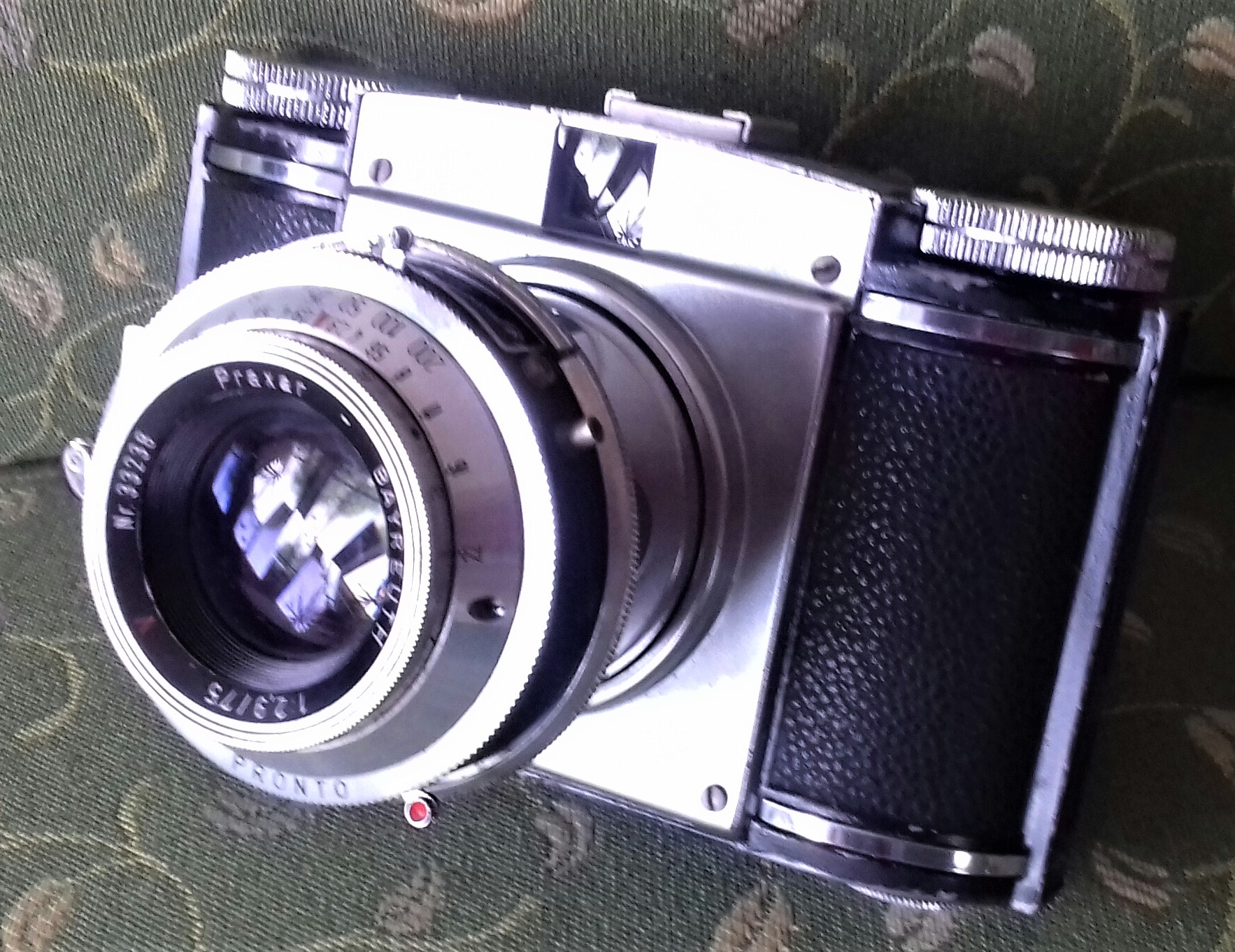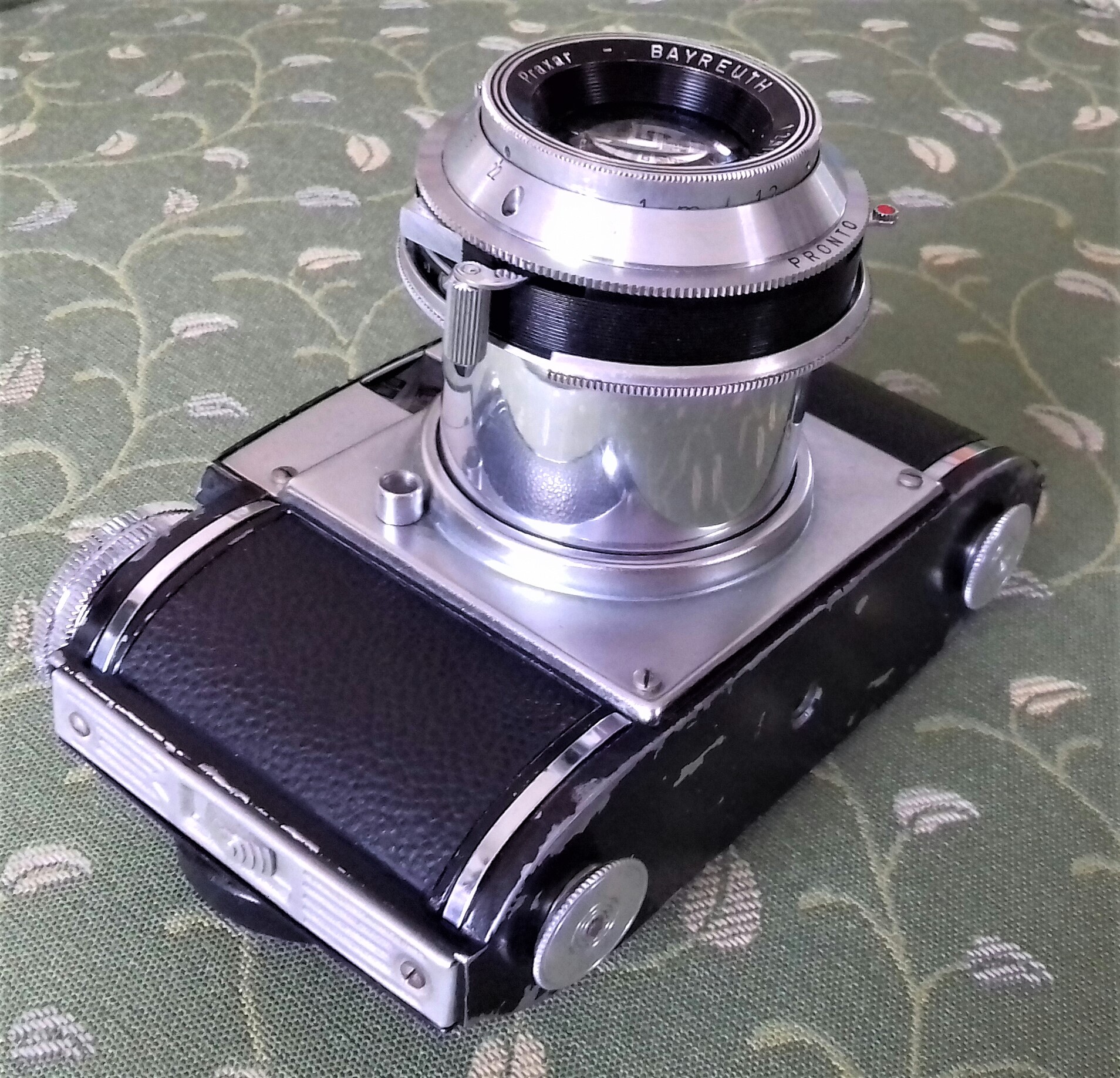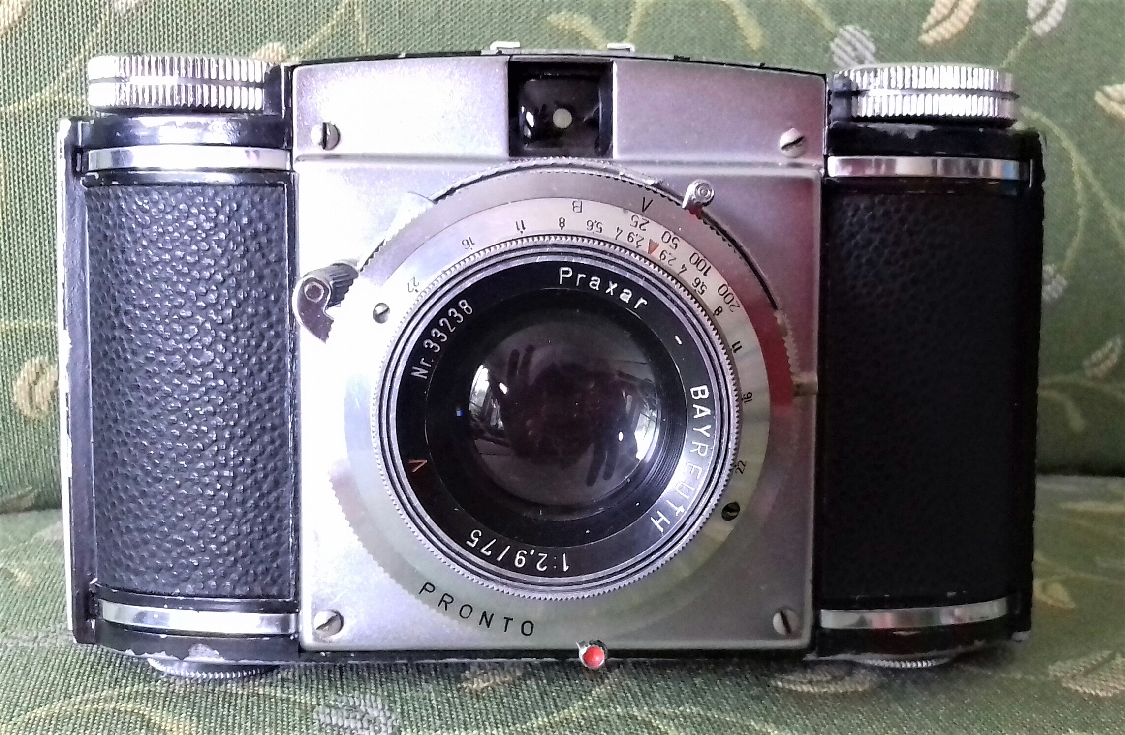 Die Kamera ist mit einem einfach vergüteten dreilinsigen „Praxar“-Objektiv ausgestattet. Sie hat die Zeiten B, 1/25, 1/50, 1/100 und 1/200 Sekunde und die Blenden 2,9 bis 22. Der Fokusring lässt sich von 1 m bis ∞ einstellen. Anders als bei den einfacheren Modellen hat der „Pronto“-Verschluss einen Spannhebel. Der Auslöser sitzt rechts am Objektiv und wird beim Einschieben des Tubus in einer Öffnung arretiert. Es gibt einen (kalten) Blitzschuh und eine Synchronbuchse, außerdem unter dem Tubus ein rotes Hebelchen für den Zeitauslöser. Ein 1/4-Zoll-Stativgewinde, ein Drahtauslöser-Anschluss, große Rändelschrauben für den Filmtransport und ein verschließbares Bildnummern-Fenster runden das gute Bild ab.