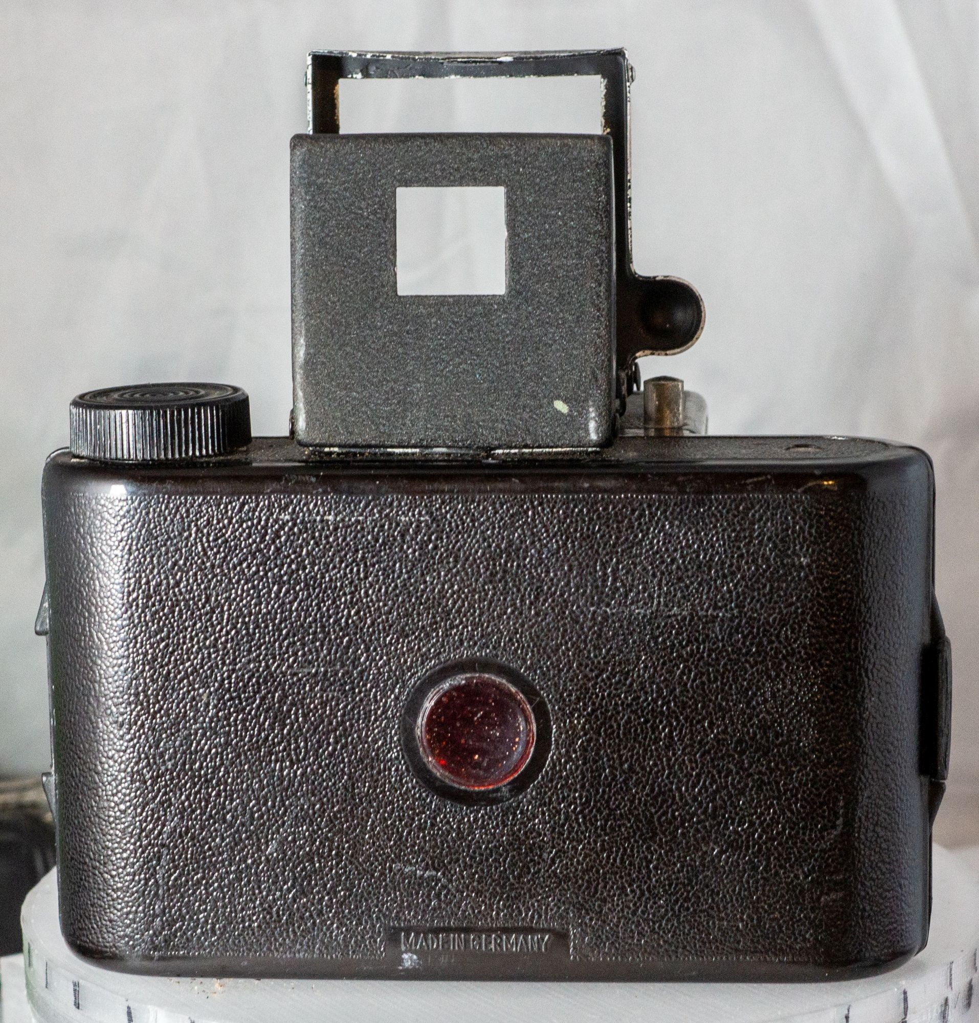 in ihrer Formgebung erinnert die Kamera stark an die "Perfecta" (VEB Rheinmetall; vgl. http://www.lippisches-kameramuseum.de/Rh...ll_Perfekta.htm), die ein paar Jahre später gebaut wurde: hinten bereits auf dem Weg zur Kamera, vorne noch boxartig, eine echte Übergangserscheinung ("Brückentechnologie" ).