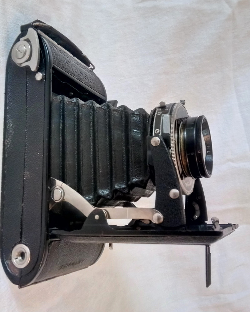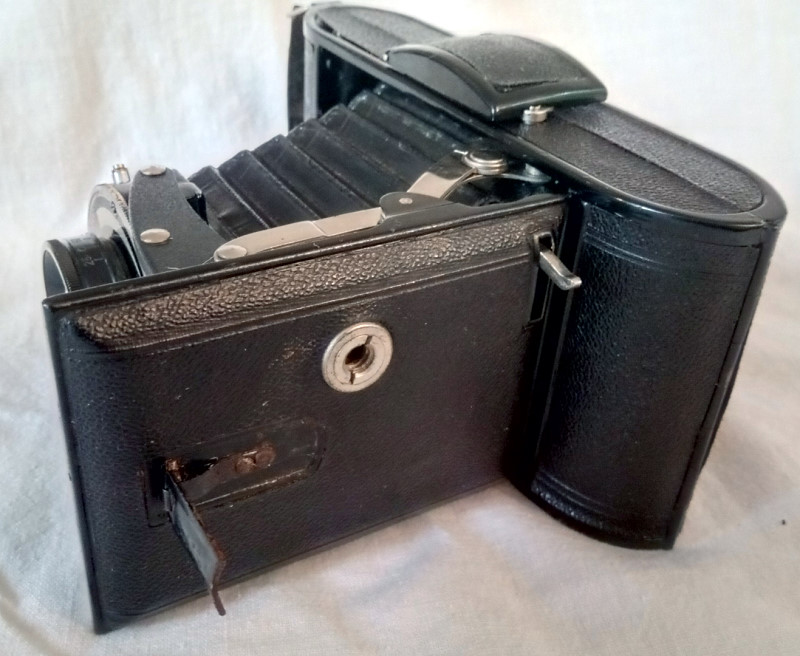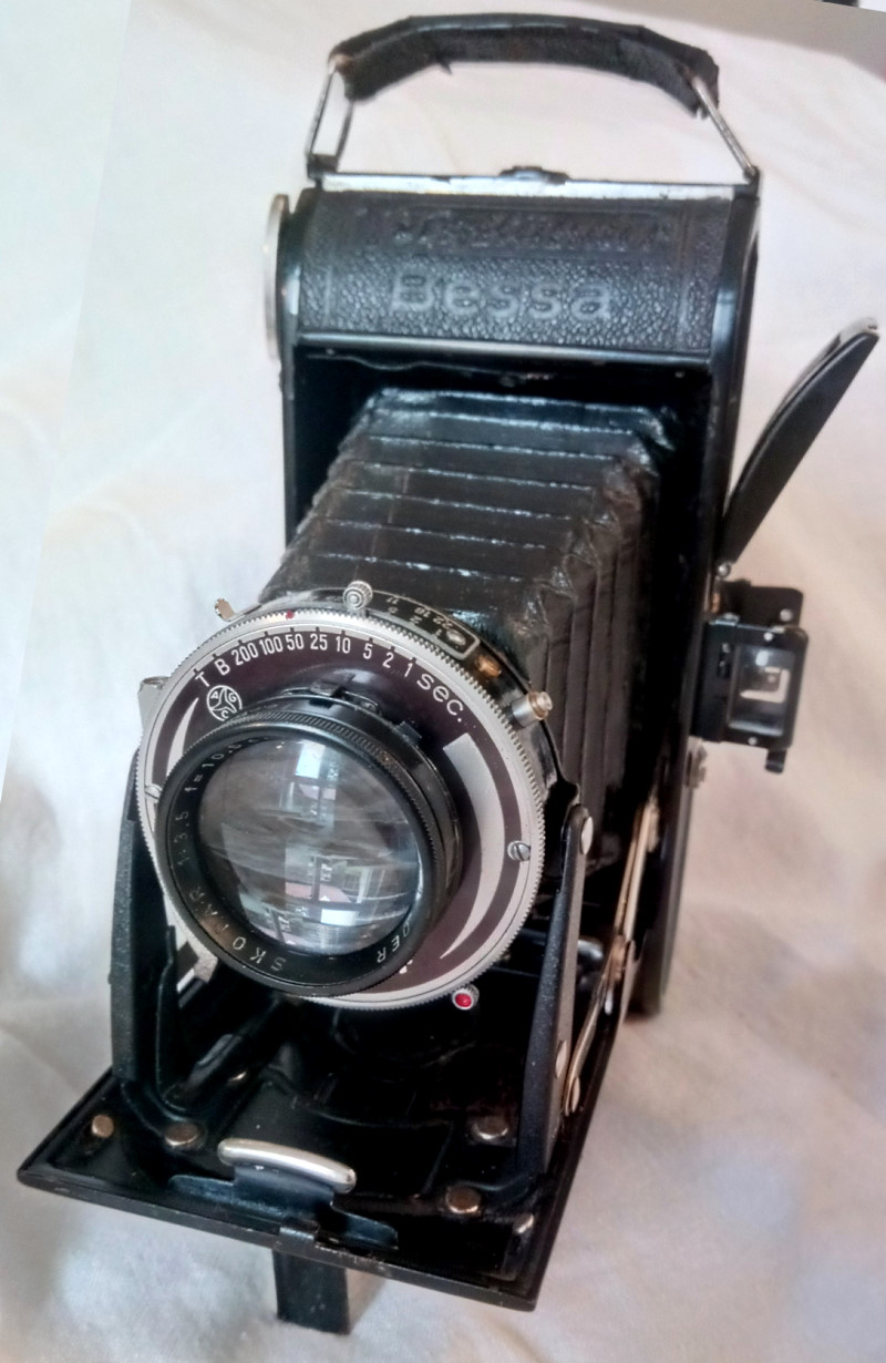 vor ein paar Wochen ist mir diese Bessa zugekaufen, ich bekam sie umsonst, weil sie optisch in einem schlechten Zustand war und auch ganz schön gemüffelt hat. Von vorne war sie total verstaubt mit Flecken auf dem Balgen, Hinten in der Filmkammer lebten kleine weisse Tiechen. Ausserdem ein paar Rostflecken. Aber sie hat keinen Pilz im Objektiv und die schnellen Zeiten sind ok.