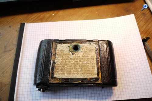 Das ist eine feine Geschichte. Diese Zeitungspapier-Unterlagen kenne ich auch von Möbeln, wo in den Schubfächern Zeitungen eingelegt wurden oder auf Schrankoberseiten oder als Makulatur-Ersatz unter Tapeten. Auch habe ich Einbindungen von Büchern aus Zeitungspapier gesehen. Weiter gab es bei Wandbildern auf Rückseiten angeklebte Zeitungsseiten. Spaß mach dann auch die alten Textteile nachzulesen. Glückwunsch zu dieser Kamera.