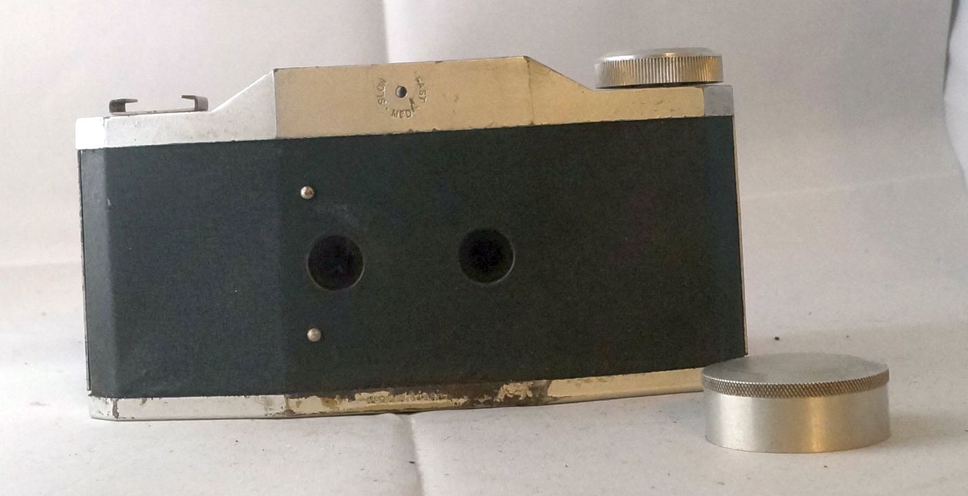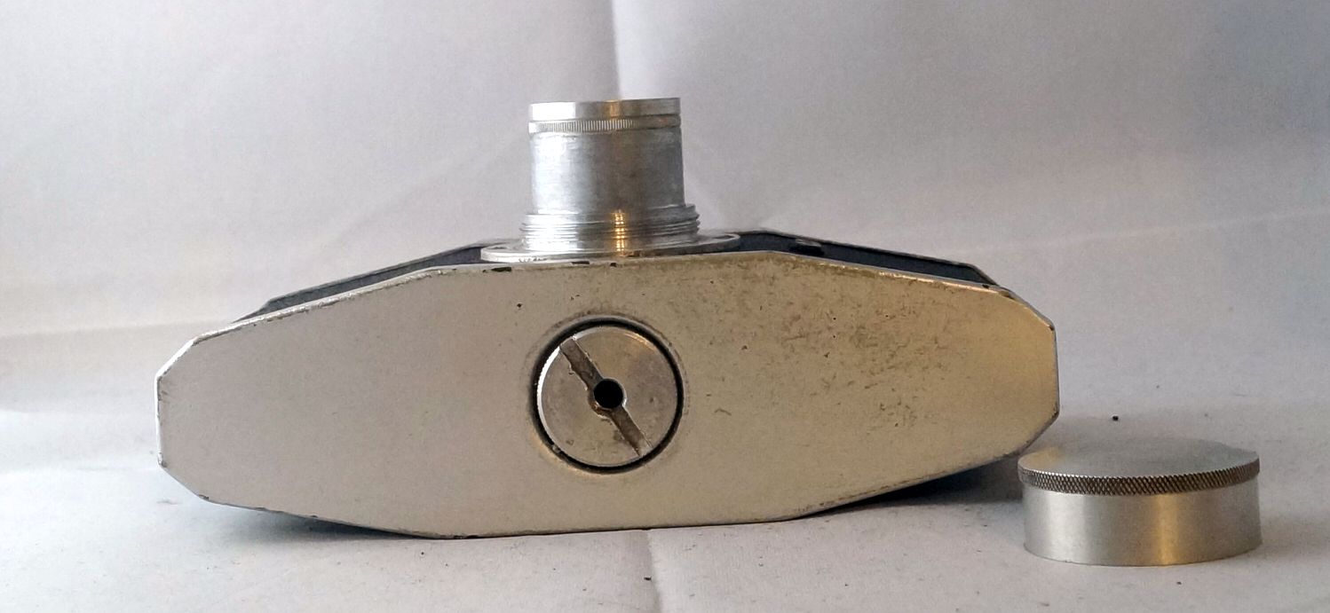 Die erste Variante unterscheidet sich von der zweiten Variante wirklich nur durch die Auslösesperre, erkennbar an dem kleinen Metallstift, rechts schräg über dem Objektiv, dieser wurde von der Verschlusskappe gedrückt und die Auslösesperre war aktiv.