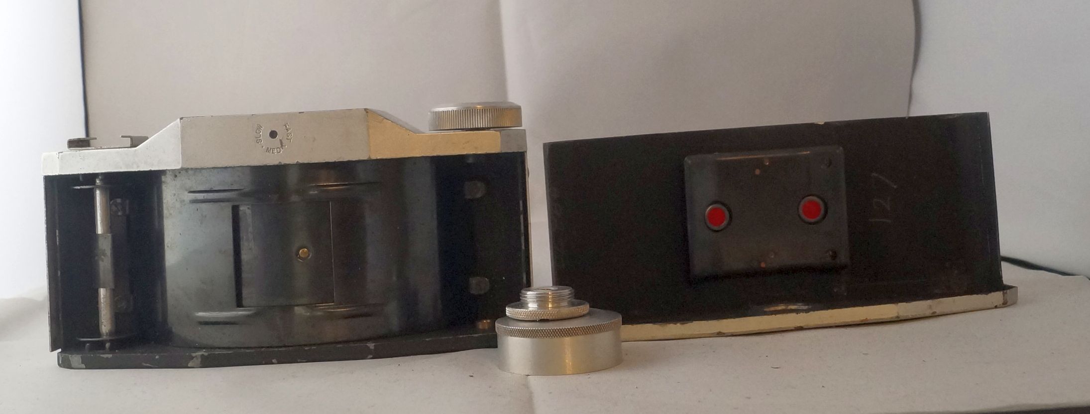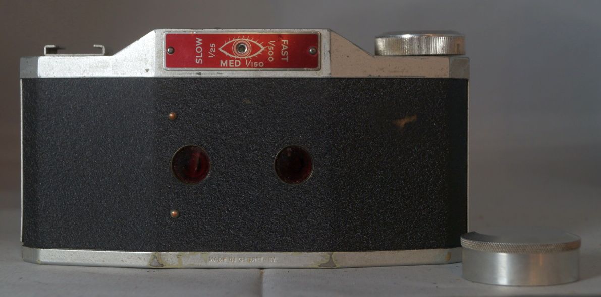 Insgesamt wirkt die Kamera dadurch deutlich wertiger als die Purma Special. Es gibt 3 Varianten dieser Kamera, ich habe ( bis jetzt) zwei. Die erste Variante hatte noch keine Auslösesperre, wenn das Objektiv eingeschoben war, ab 1953 kam dise dann. Somit ist meine erste Variante frühestens 1953 gebaut worden. 1956 wurde die Kamera dann durch die roten Blechschilder rein optisch aufgehübscht, damit wäre meine Variante 2 frühestens 1956 gebaut.