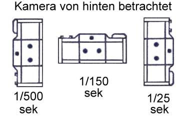 Geschwindigkeiten: 1/25 1/150 1/500 (Admin: in Abhängigkeit von der Kamerahaltung ***)