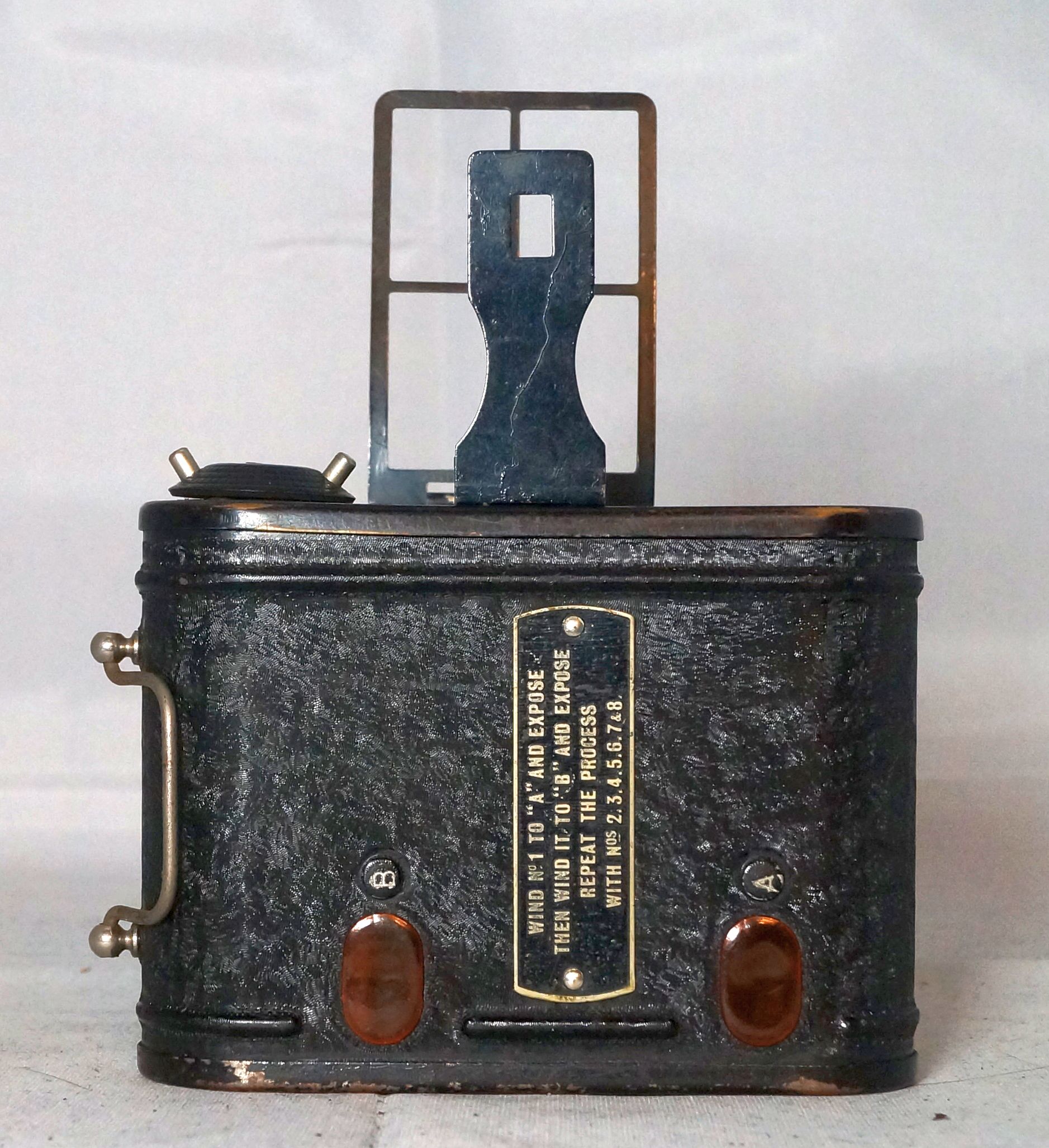 Hersteller: Ensign ( auch Houghton oder Butcher , da sich diese Firmen zusammen-schlossen, ist das immer etwas unklar.) Baujahr: ab 1922 Film: 120 Rollfilm Format: 6 x 4 Sucher: Klappsucher ( es gab einen Brillantsucher zum aufstecken als Zubehör) Objektiv: Meniskuslinse f=14 1=70mm Verschlusszeiten: 1/30 und B Focus: 10 Fuß bis unendlich